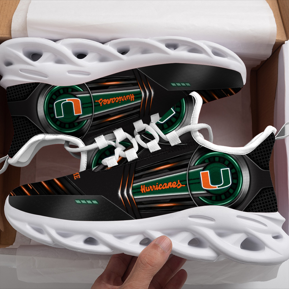 Miami Hurricanes NCAA Max Soul Shoes Sneakers Printed White And Black Sole For Men And Women