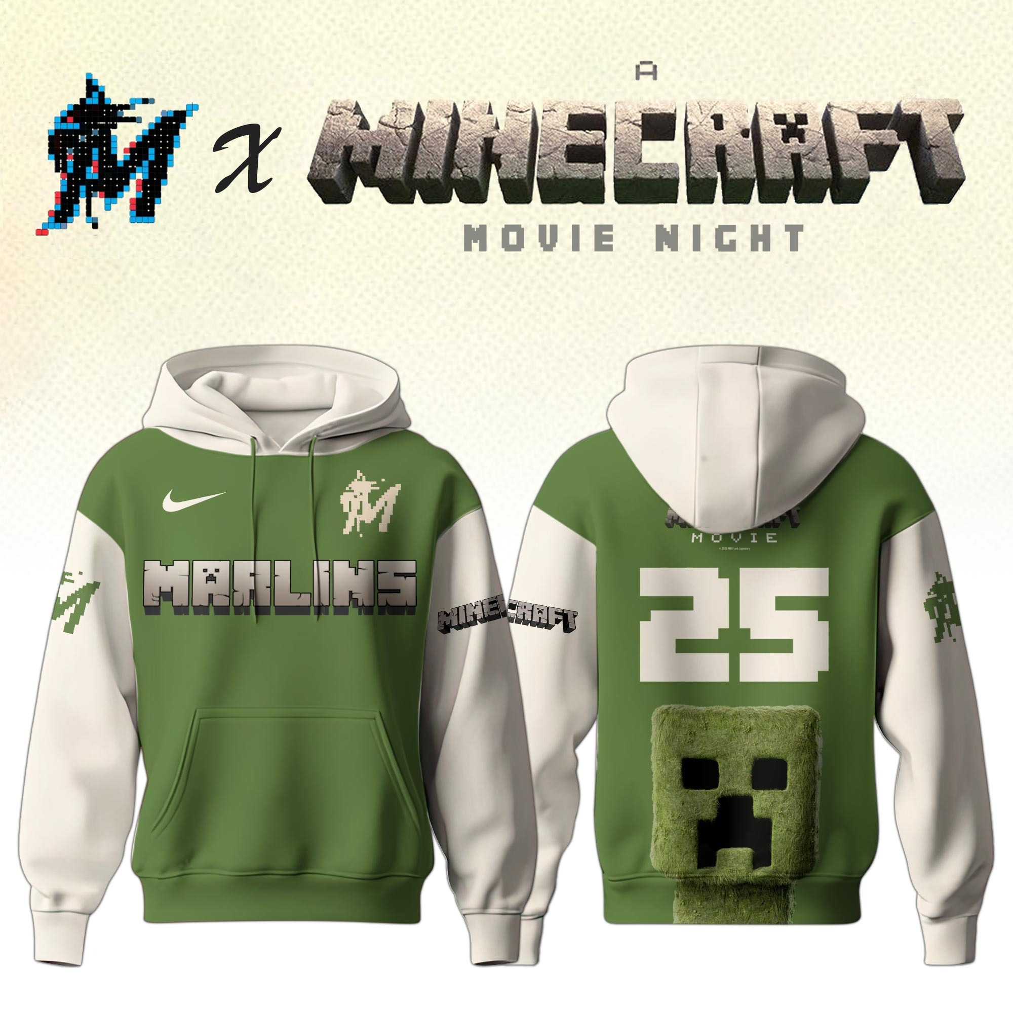 Miami Marlins MLB x A MINECRAFT MOVIE Night Hoodie Unique Gifts Baseball Fans