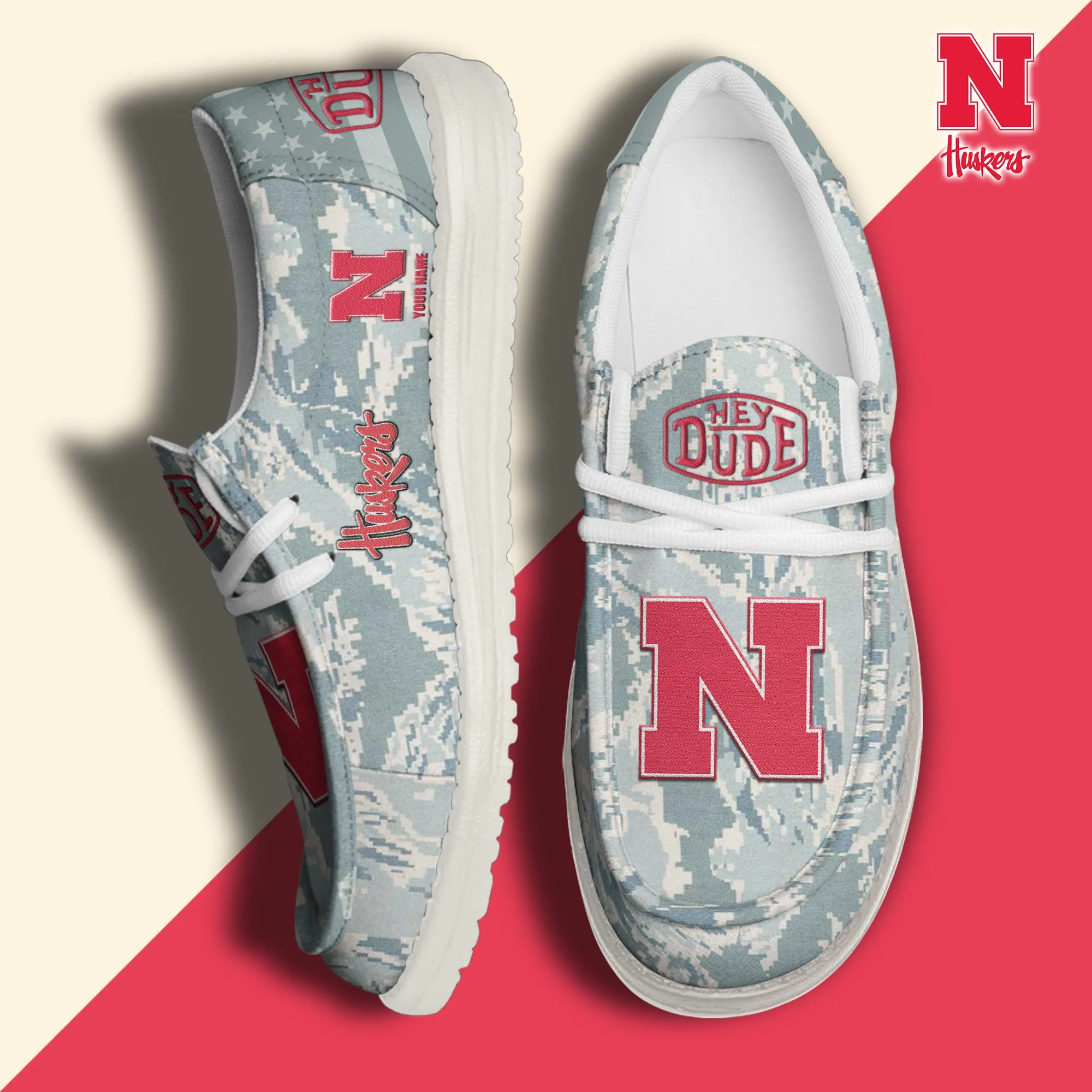 Michigan Wolverines 3D Print Dude Shoes Camo Blue Grey For Men Women