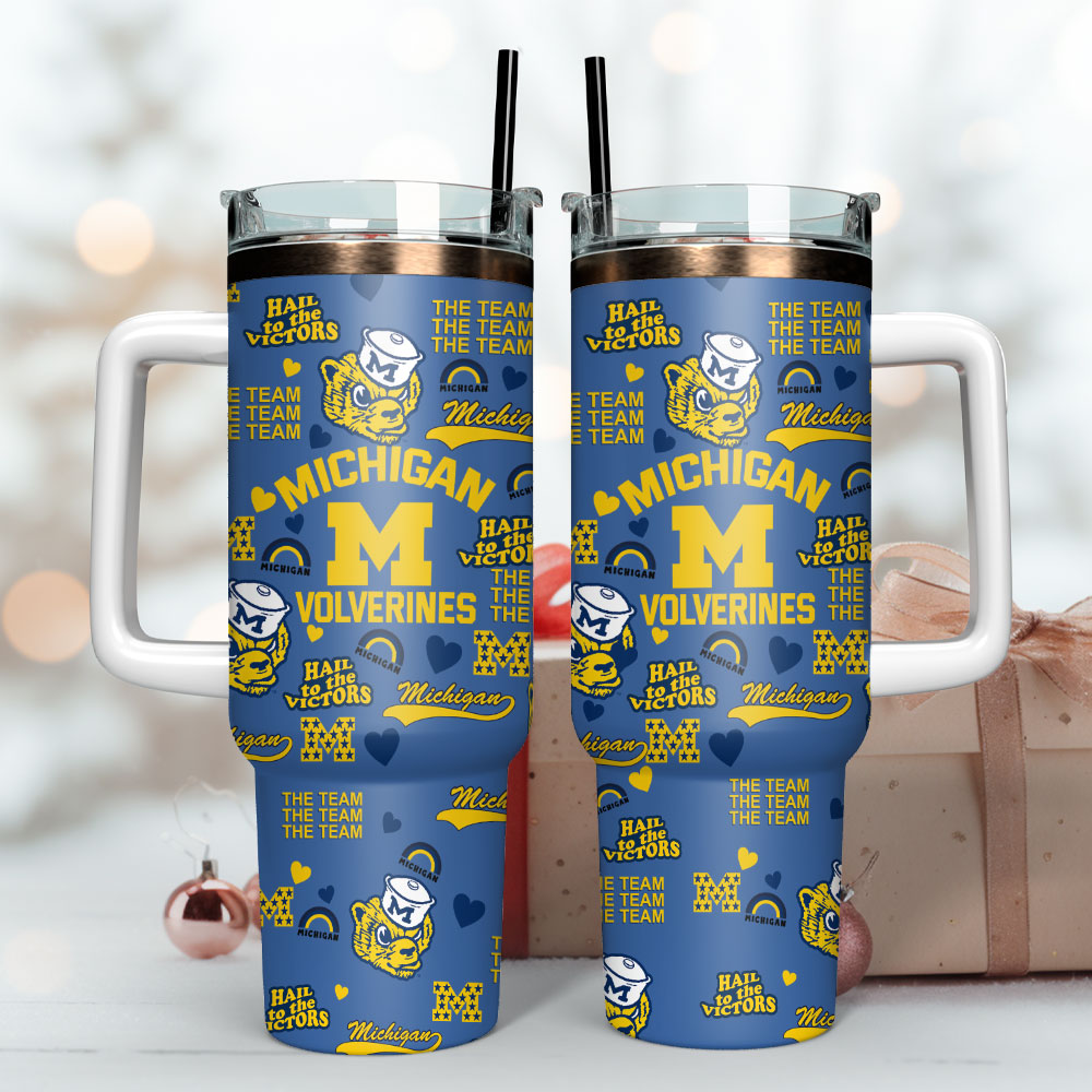 Michigan Wolverines Football Ncaa Sport Custom Stanley Quencher 40Oz Stainless Steel Tumbler With Handle