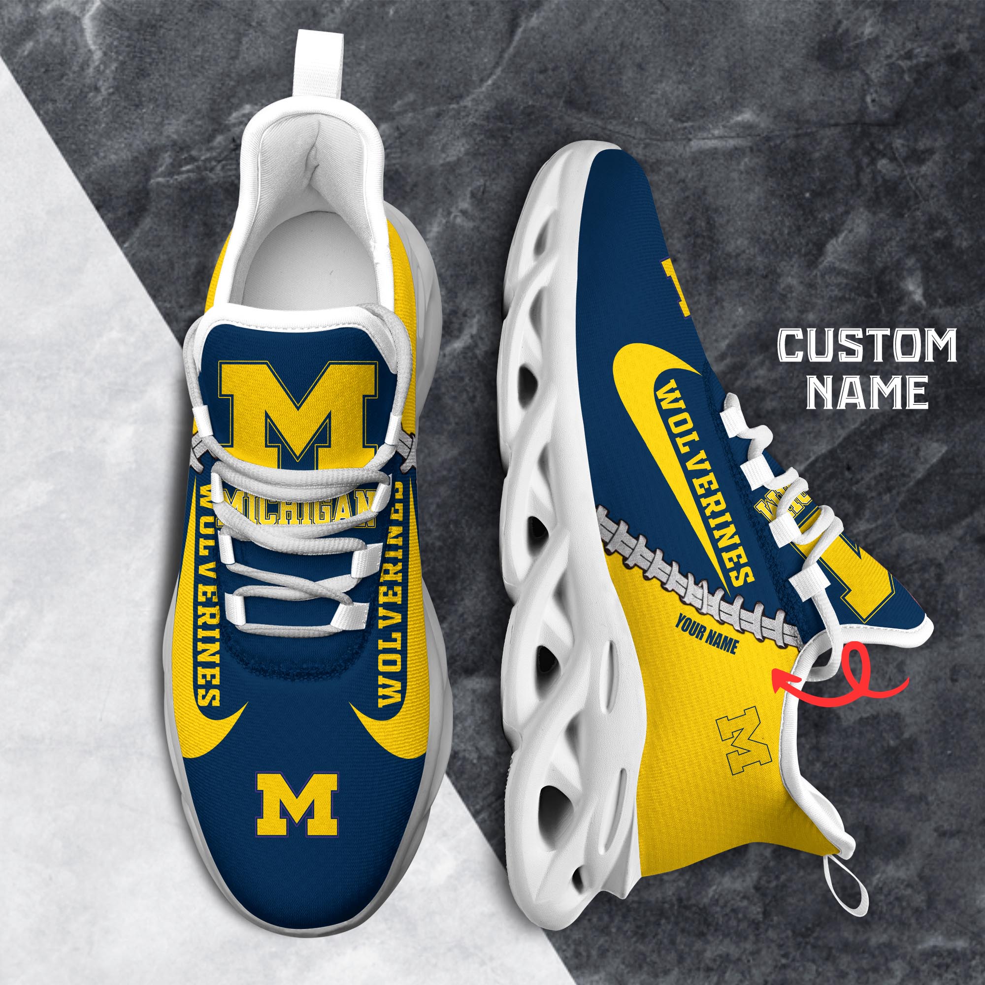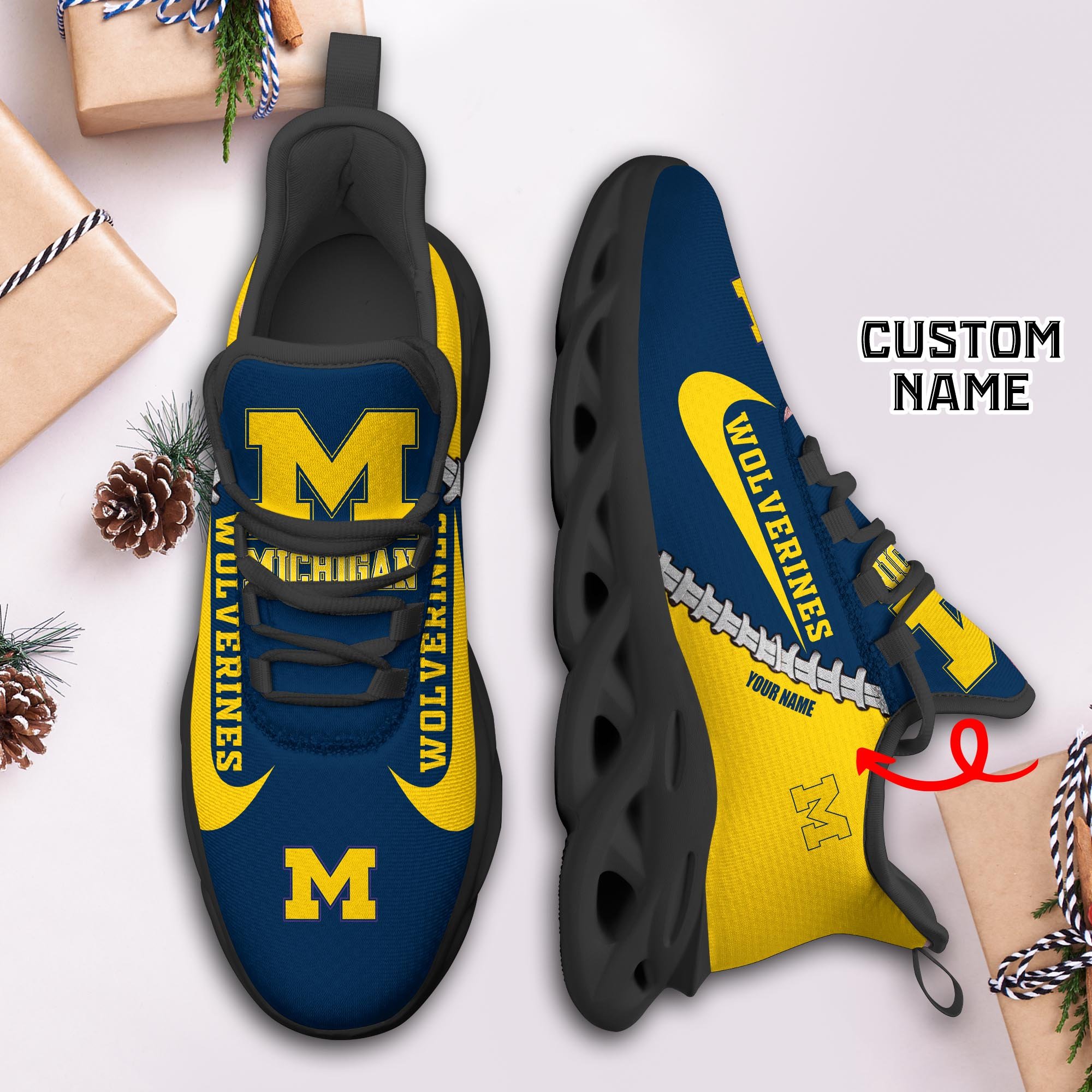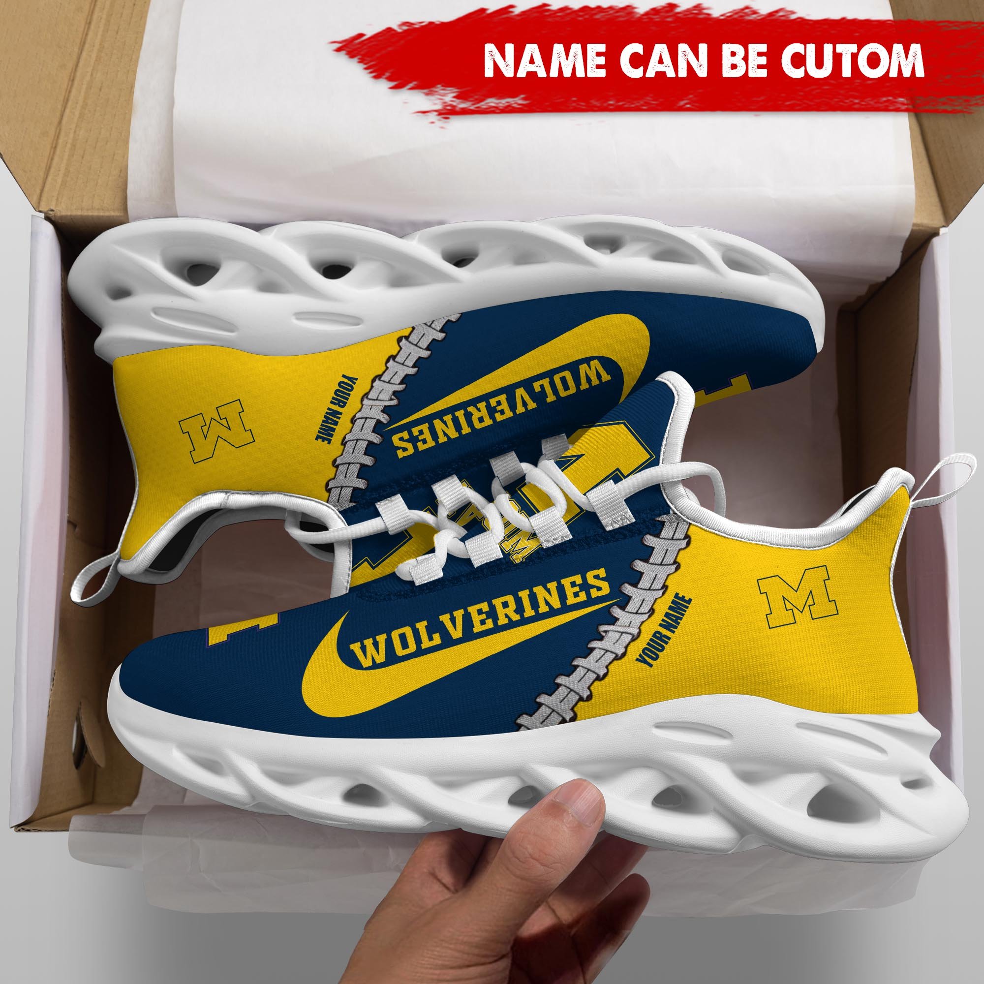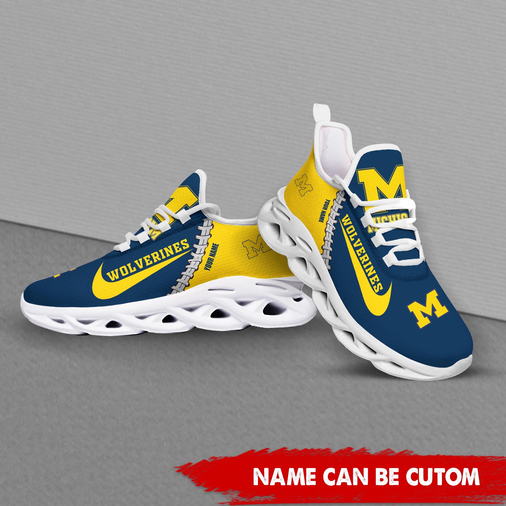 Michigan Wolverines Max Soul Shoes Sneakers Printed White And Black Sole For Men And Women
