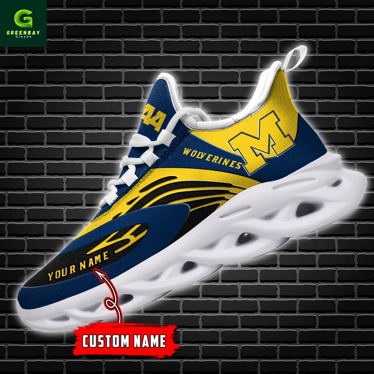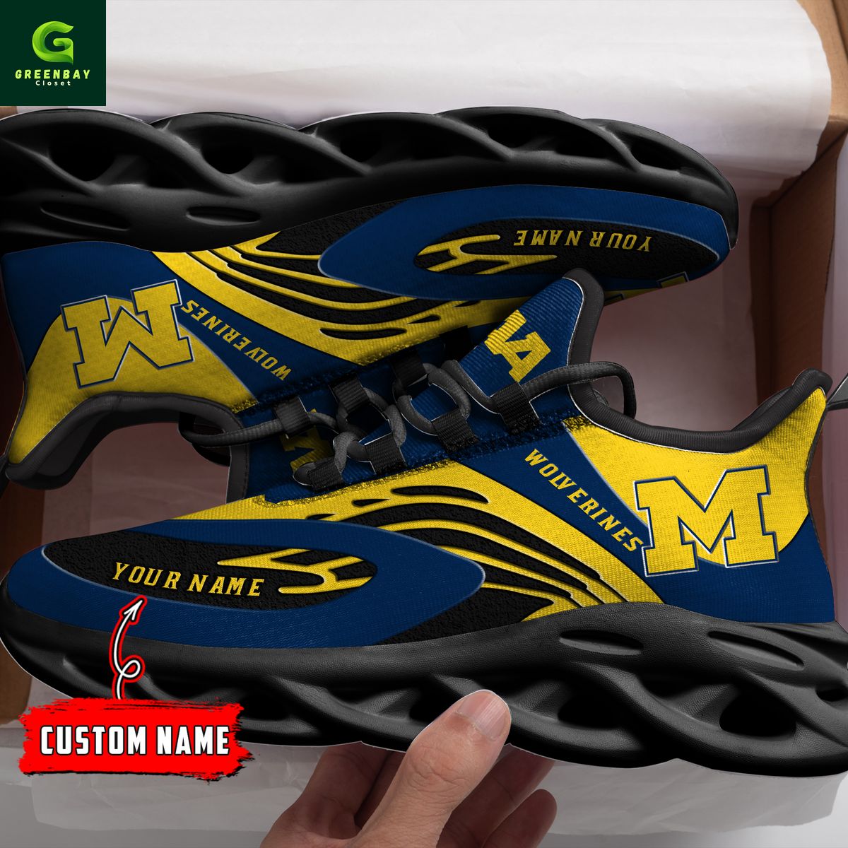 Michigan Wolverines Max Soul Shoes Sneakers Printed White And Black Sole For Men And Women