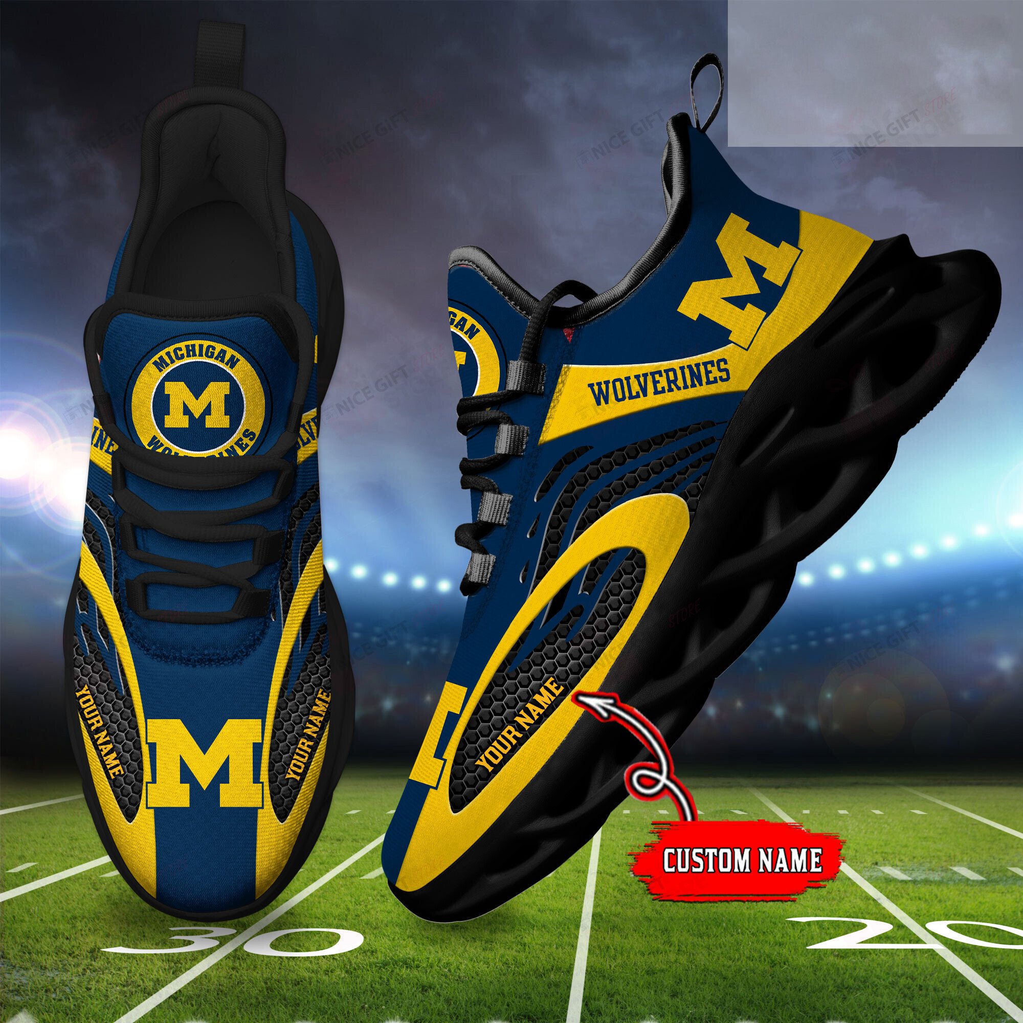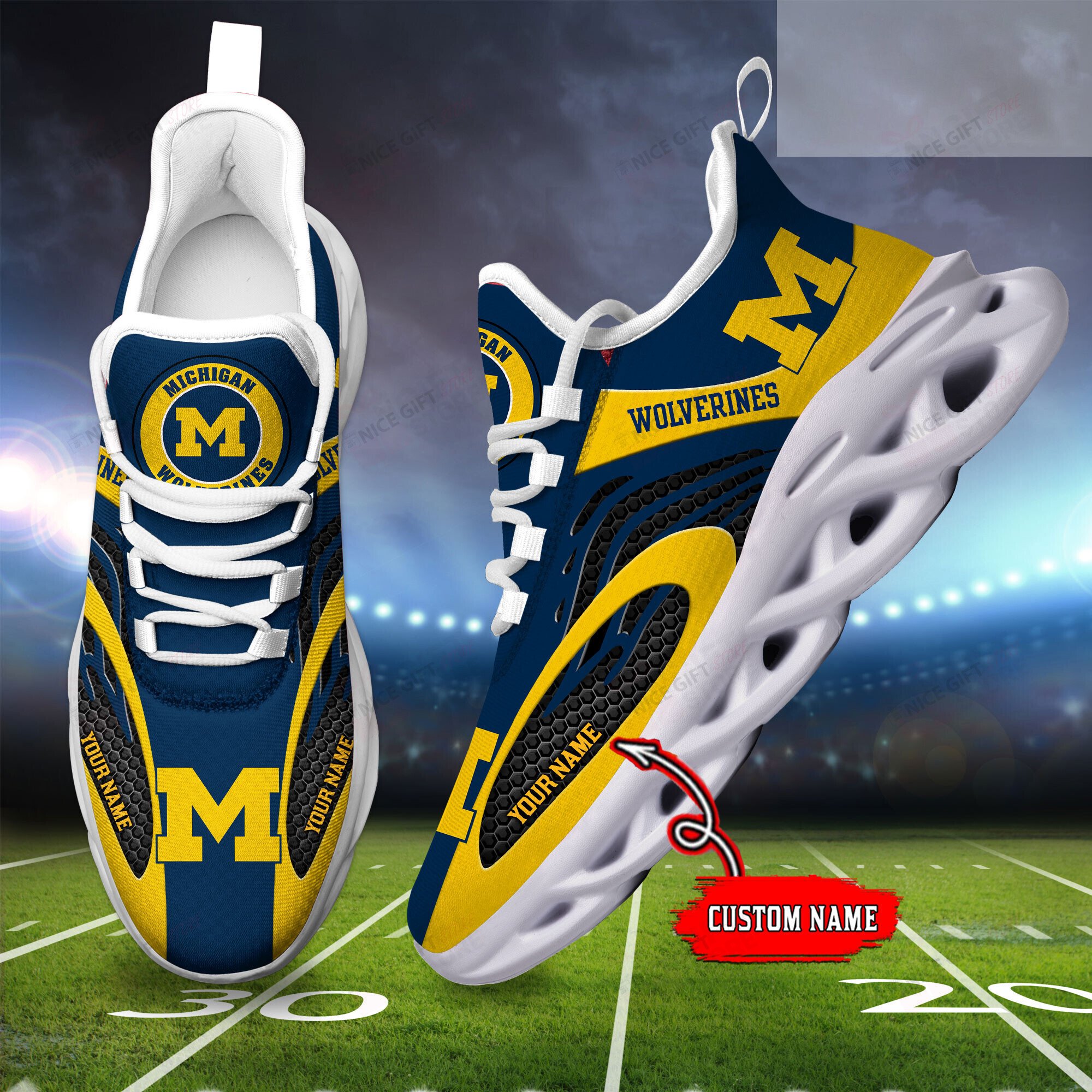 Michigan Wolverines Max Soul Shoes Sneakers Printed White And Black Sole For Men And Women