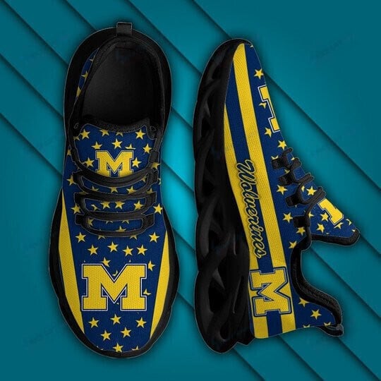 Michigan Wolverines Max Soul Shoes Sneakers Printed White And Black Sole For Men And Women