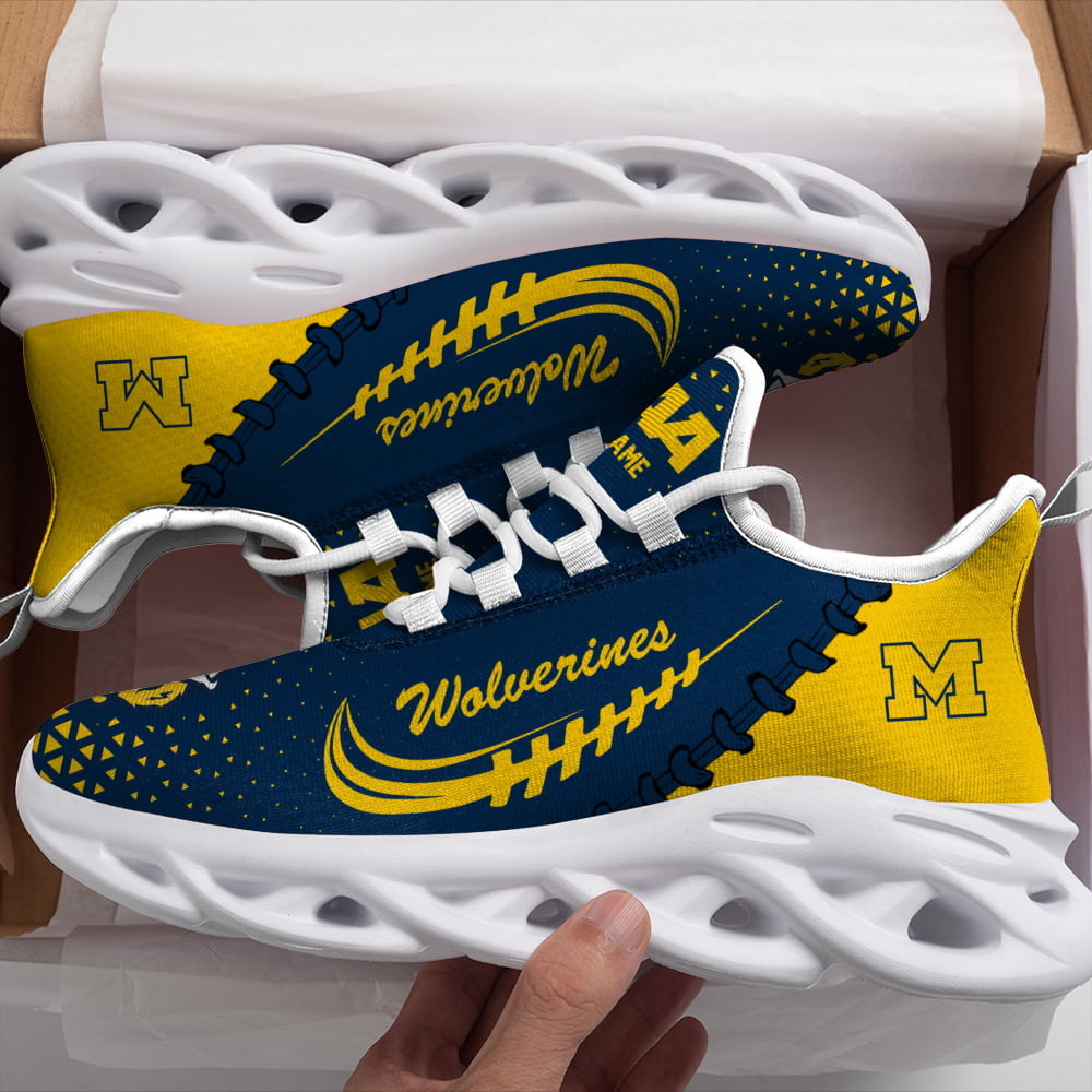 Michigan Wolverines NCAA Max Soul Shoes Sneakers Printed White And Black Sole For Men And Women