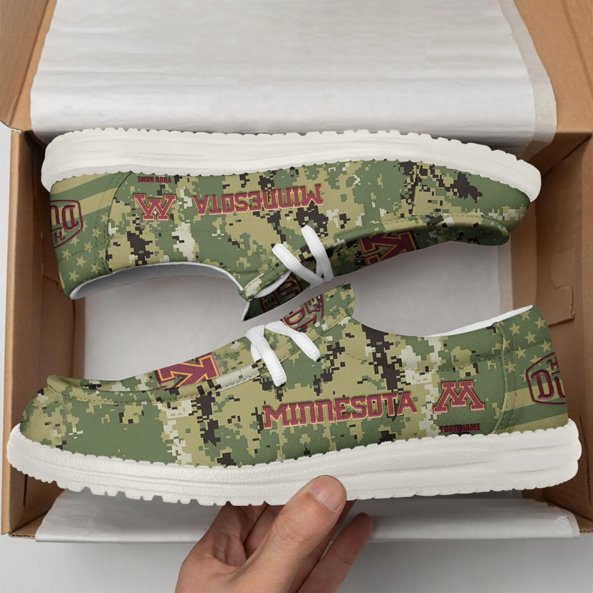 Minnesota Golden Gophers 3D Print Dude Shoes Camo Green Best Gift For Sport Fan