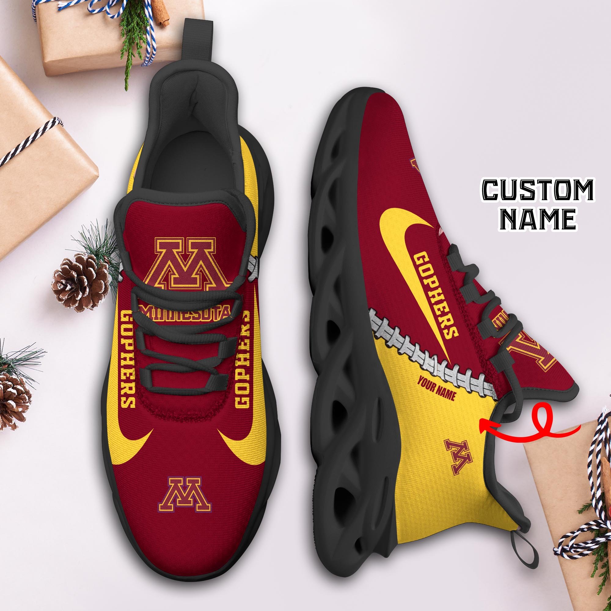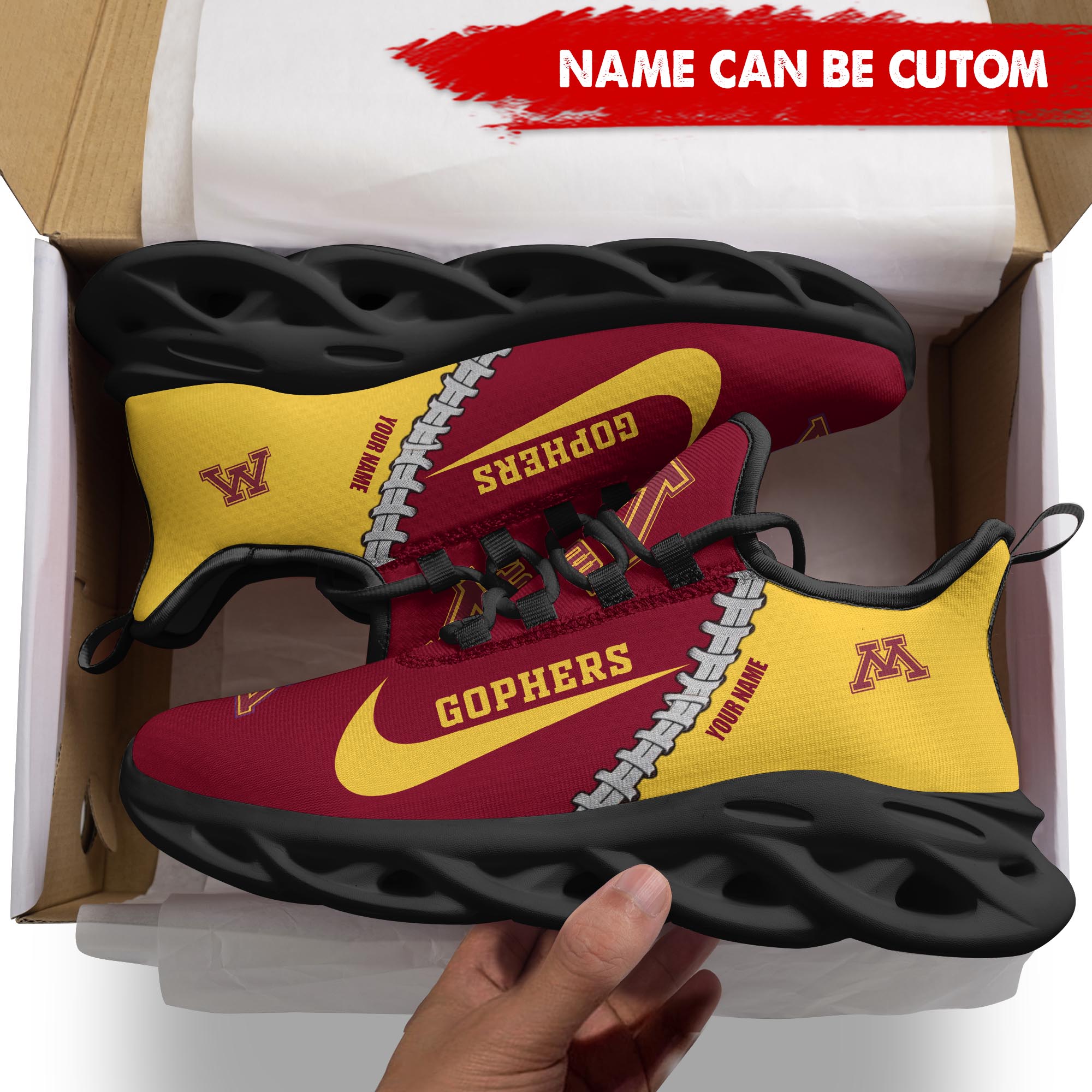 Minnesota Golden Gophers Max Soul Shoes Sneakers Printed White And Black Sole For Men And Women