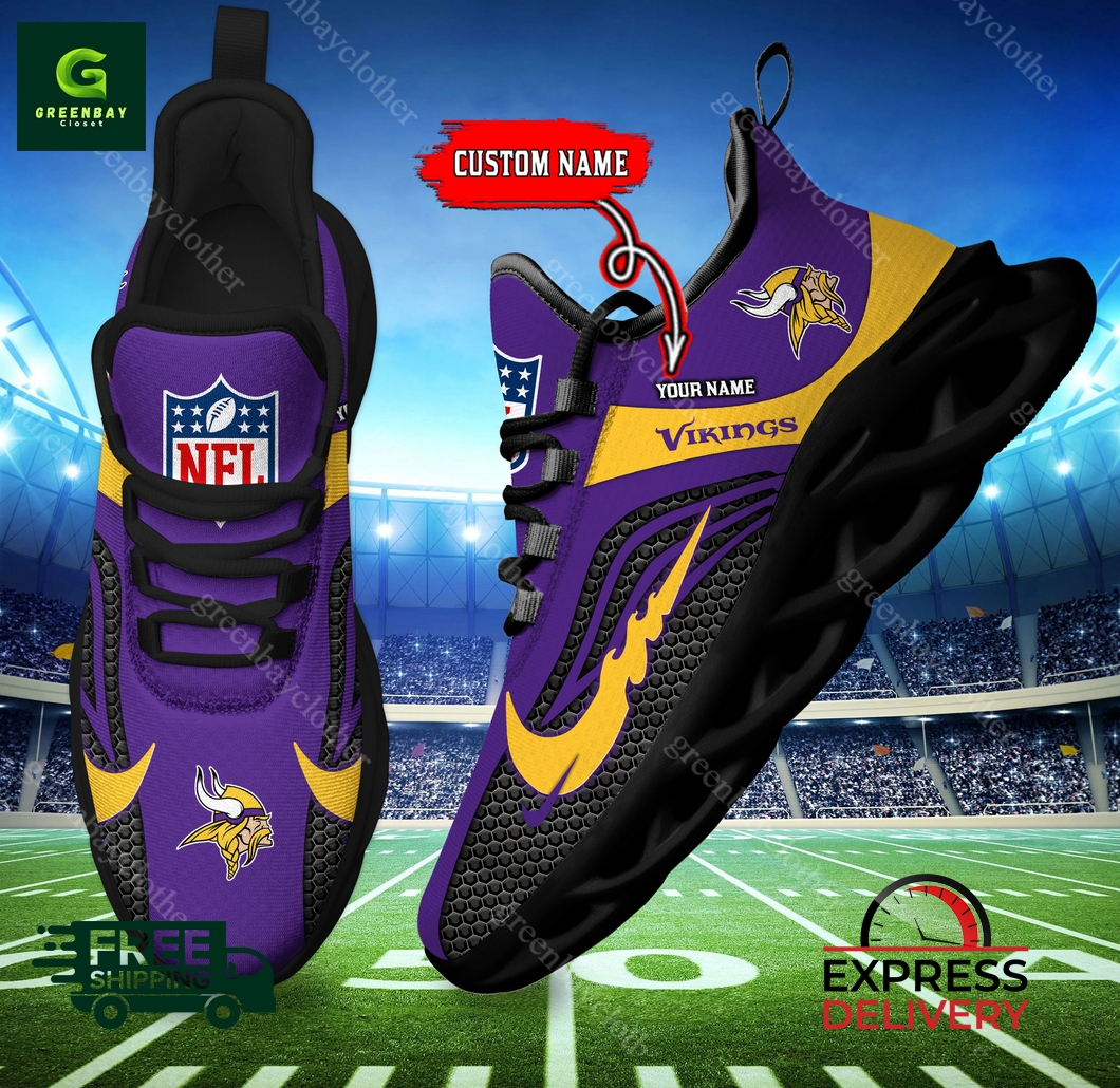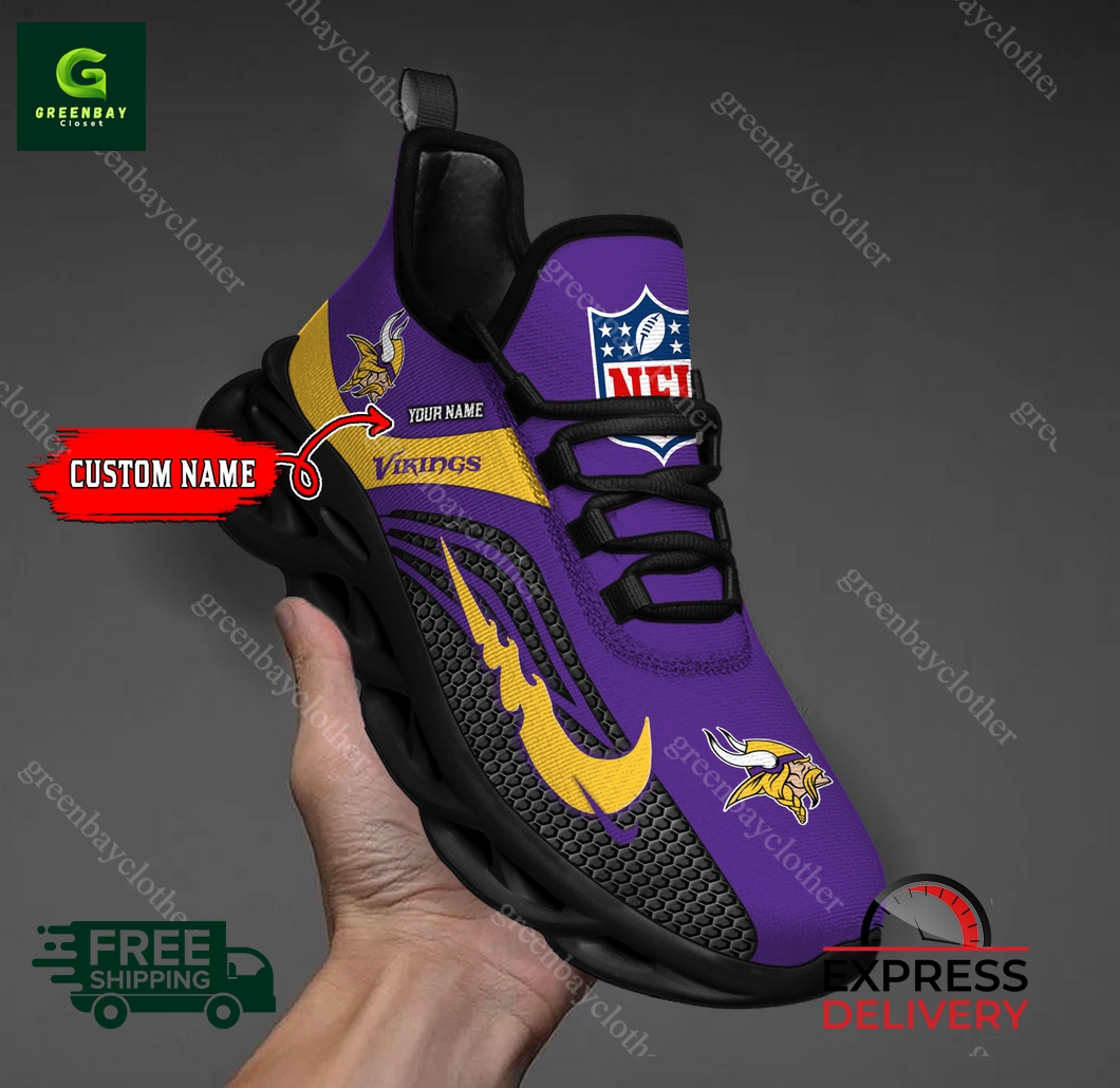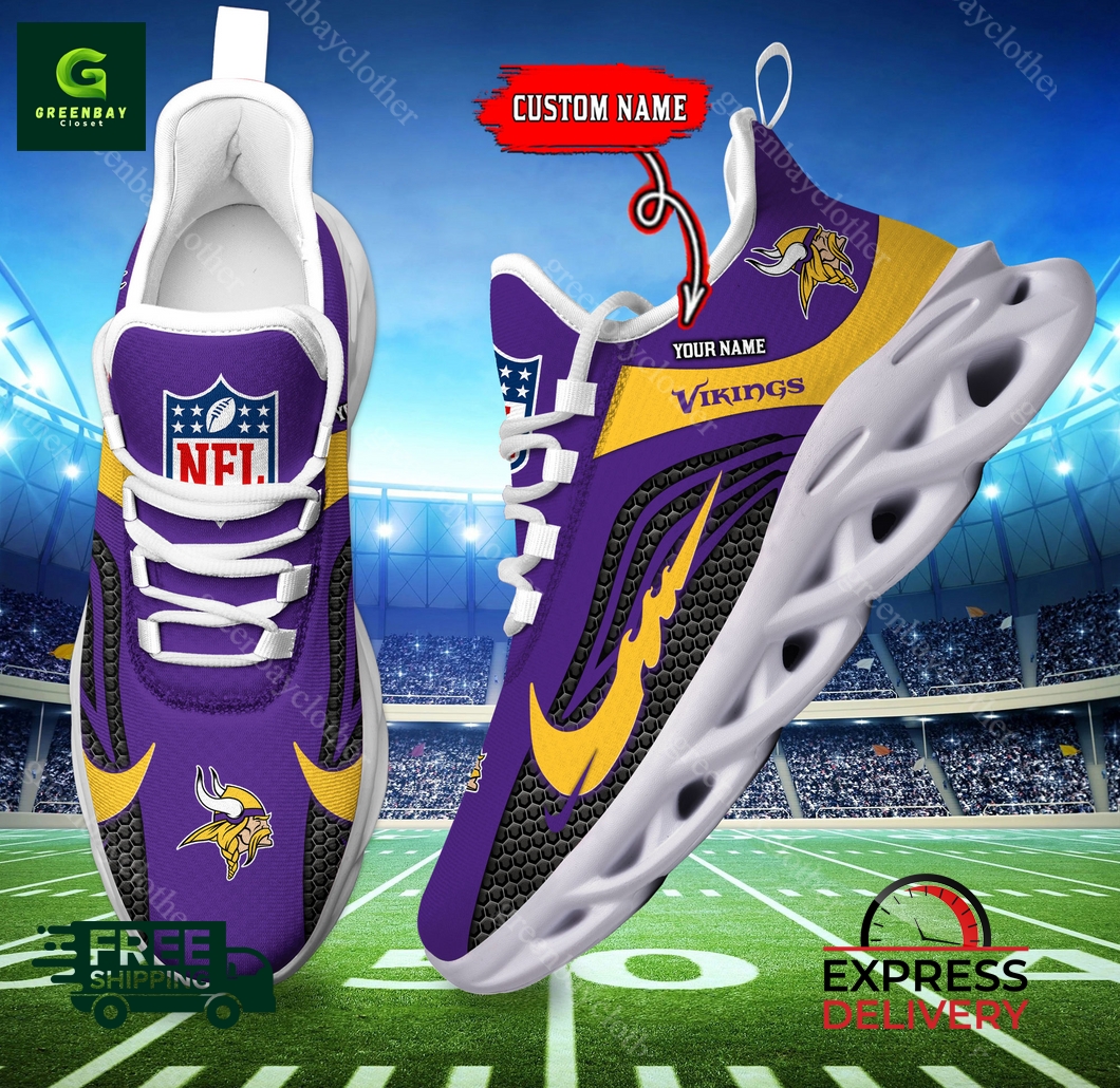 Minnesota Vikings Max Soul Shoes Sneakers Printed White And Black Sole For Men And Women