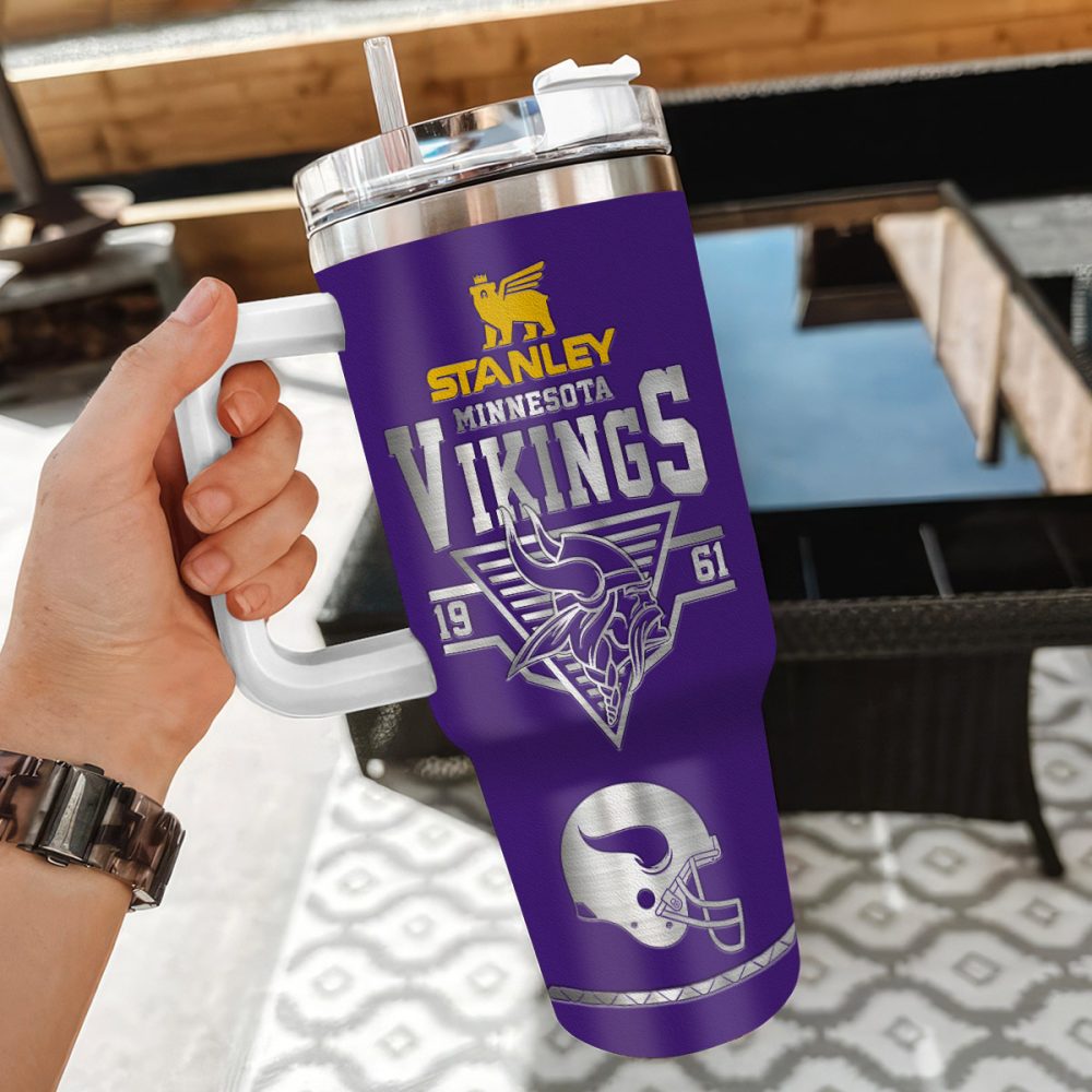 Minnesota Vikings Nfl Custom Stanley Quencher 40Oz Stainless Steel Tumbler With Handle