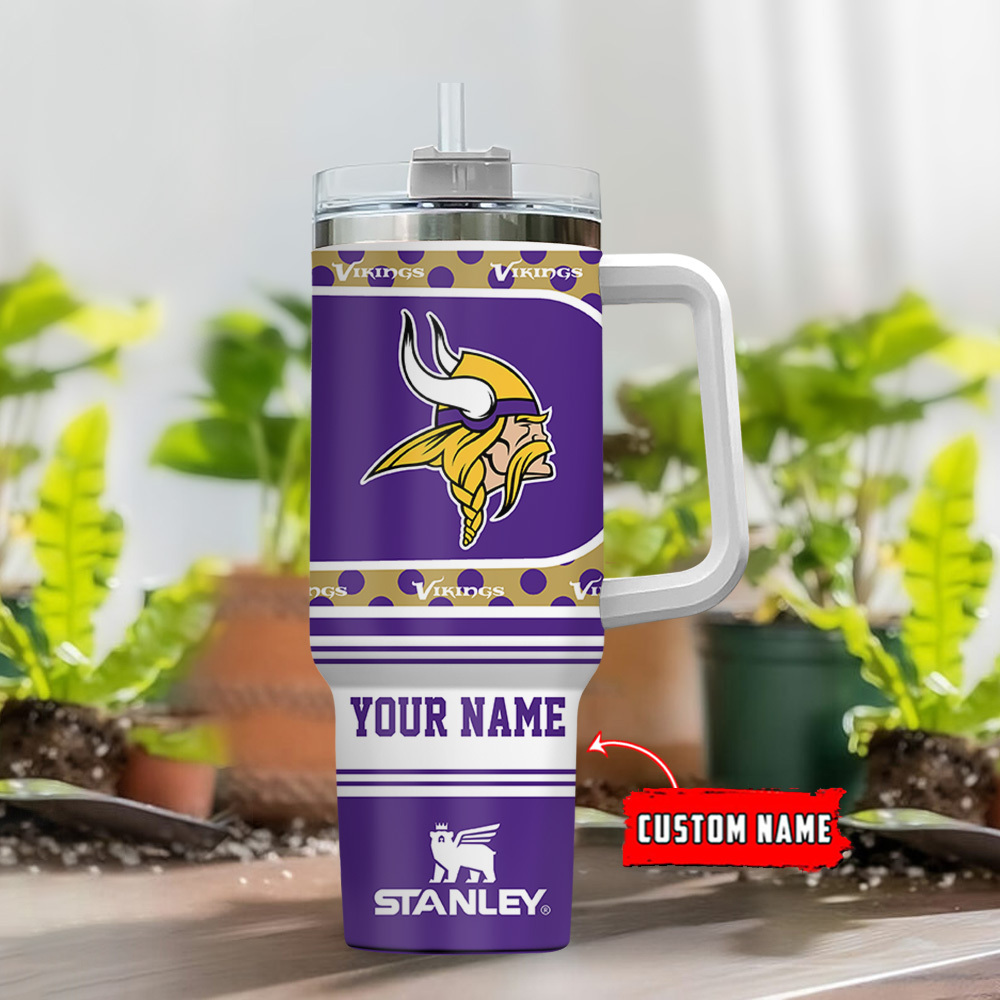 Minnesota Vikings Nfl Custom Stanley Quencher 40Oz Stainless Steel Tumbler With Handle