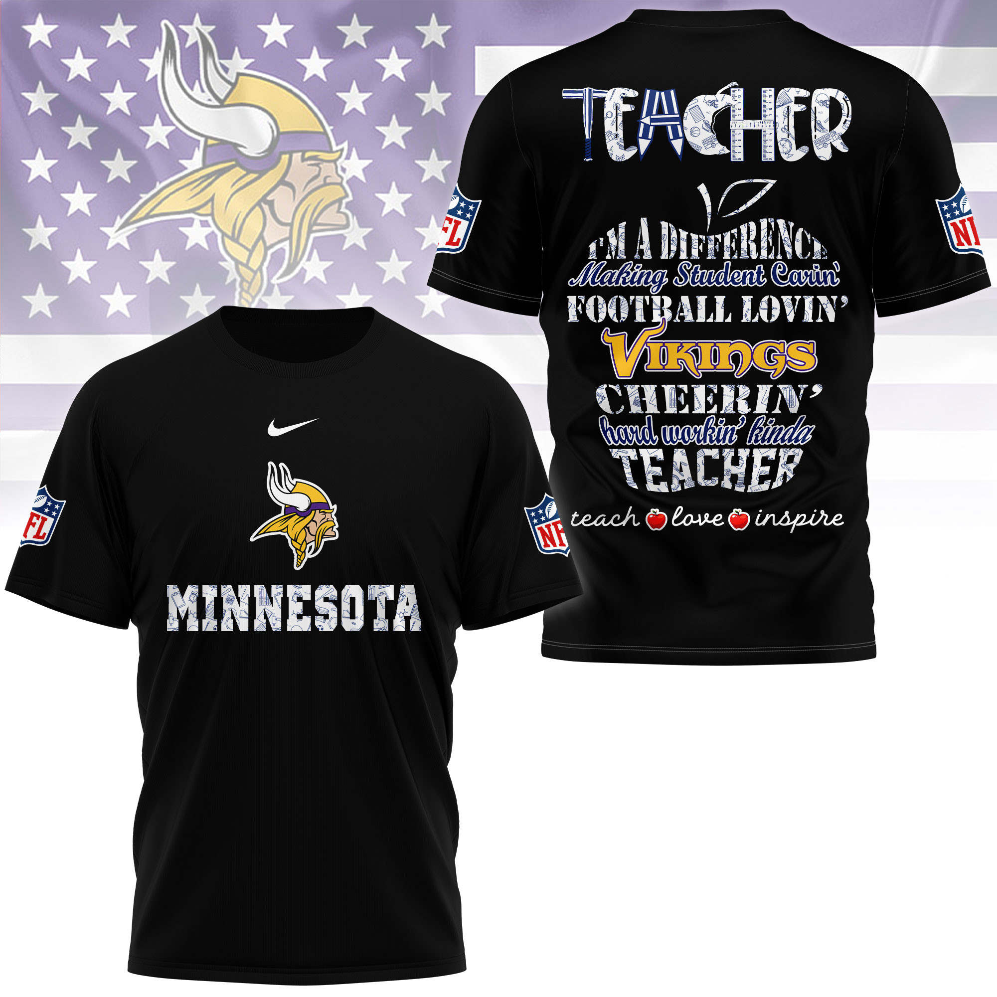 Minnesota Vikings Premium Teacher Pride 3D Shirt