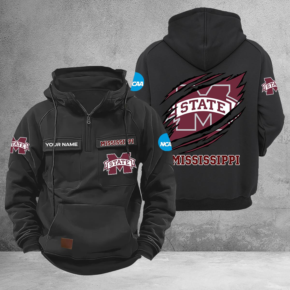 Mississippi State Bulldogs Cargo Multi-Pockets Zip Up Hoodie