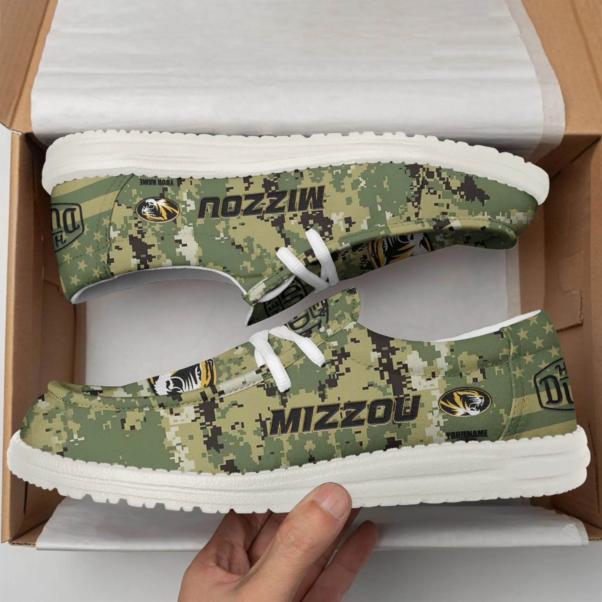 Missouri Tigers 3D Print Dude Shoes Camo Green Best Gift For Sport Fan