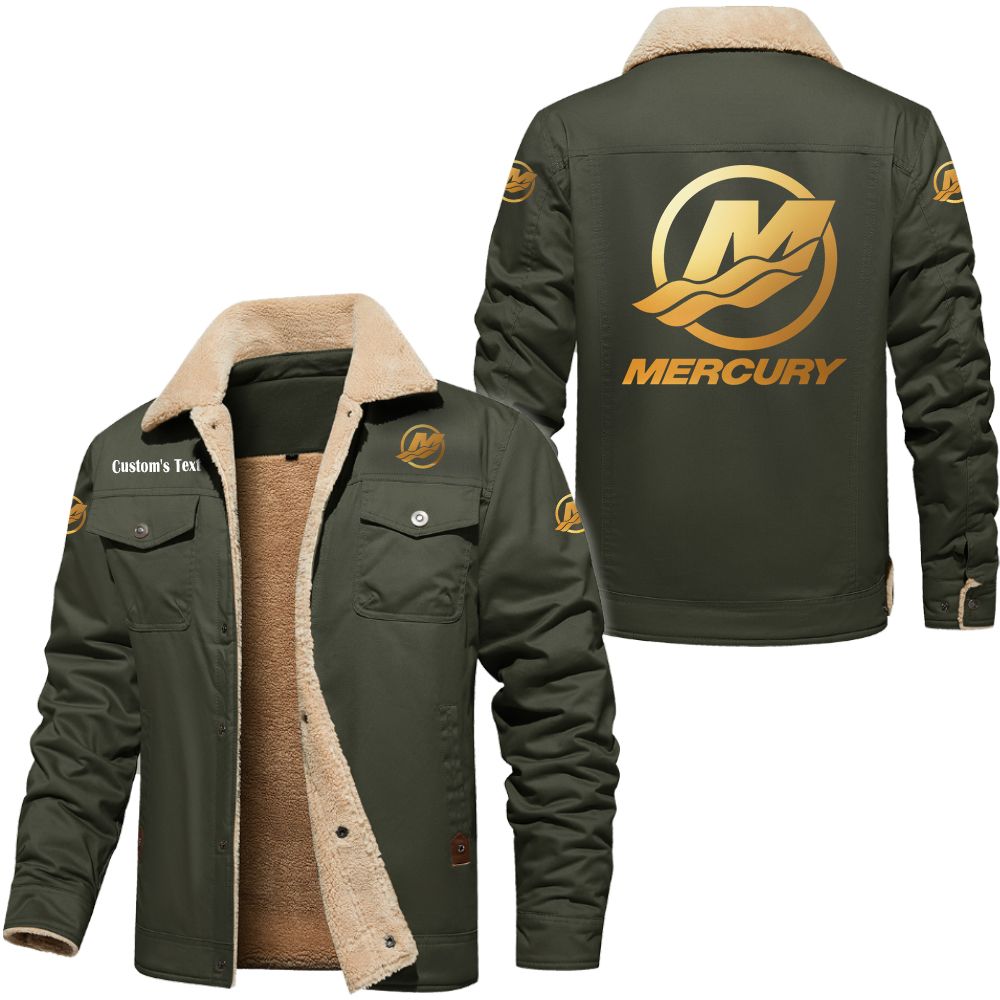Mitsubishi Golden Logo Custom Cargo Fleece Lined Cotton Jacket Army Green