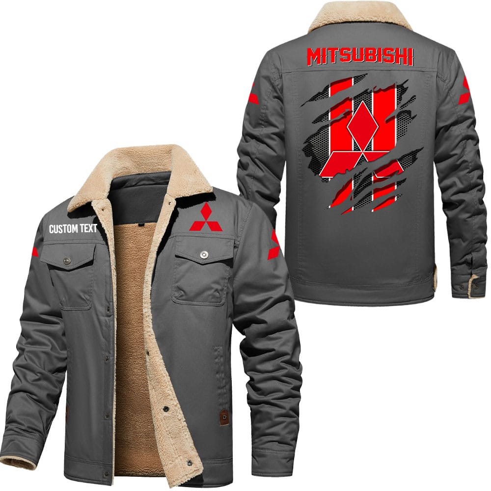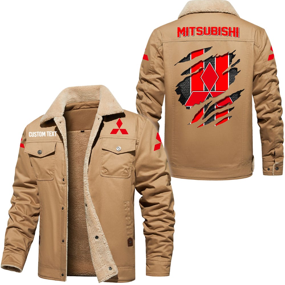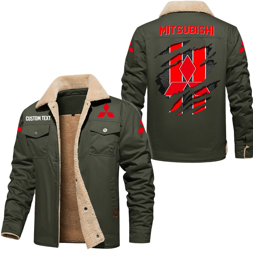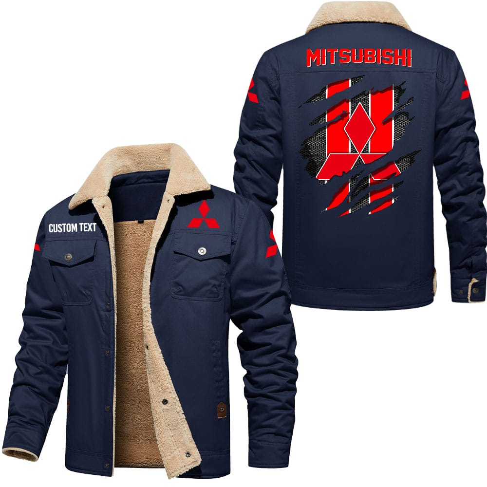 Mitsubishi Logo Custom Name Cargo Fleece Lined Cotton Jacket