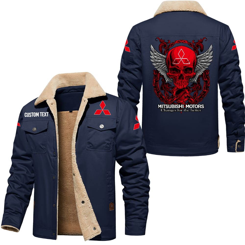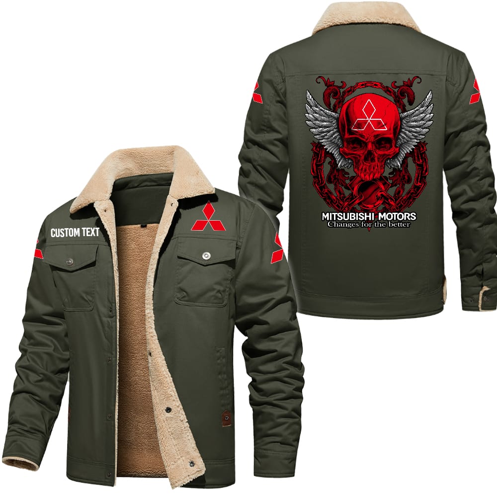Mitsubishi Motors Custom Name Skull Design Cargo Fleece Lined Cotton Jacket