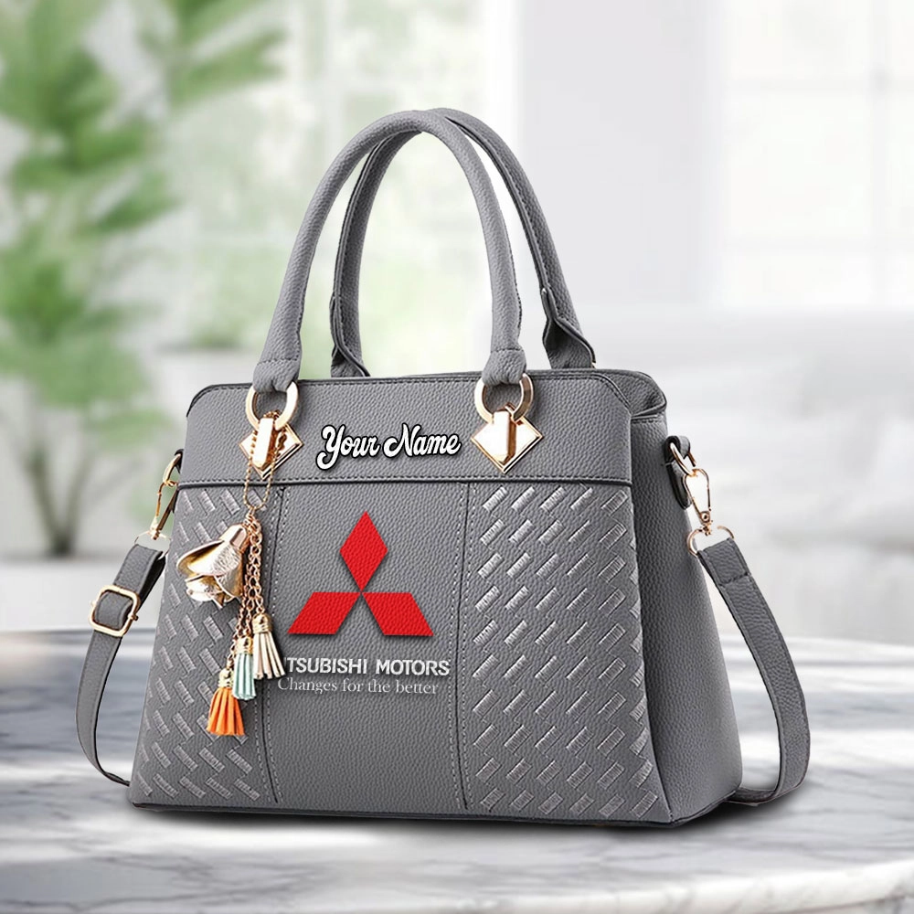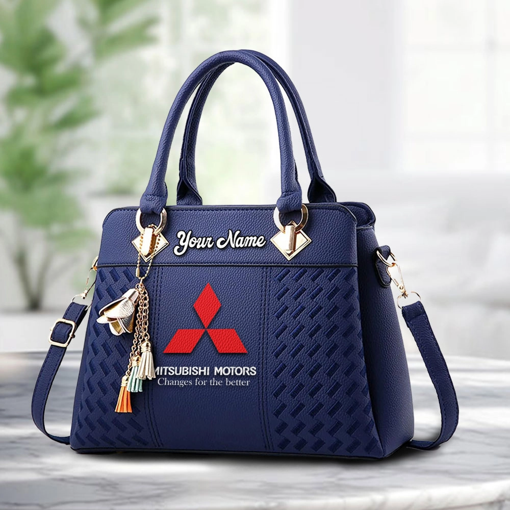 Mitsubishi Motors Logo Personalized PU Leather Handbag Custom Name For Women
