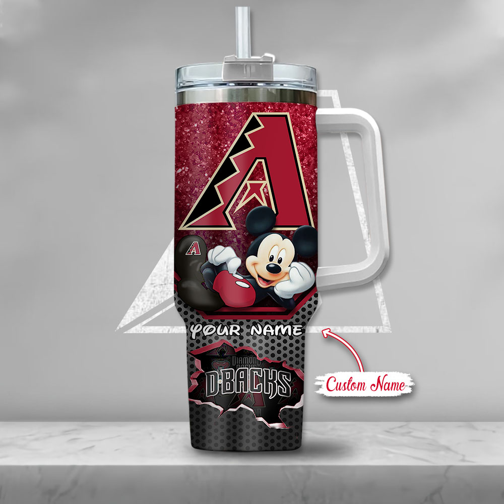 Mlb Arizona Diamondbacks Mickey Mouse Custom Stanley Quencher 40Oz Stainless Steel Tumbler With Handle