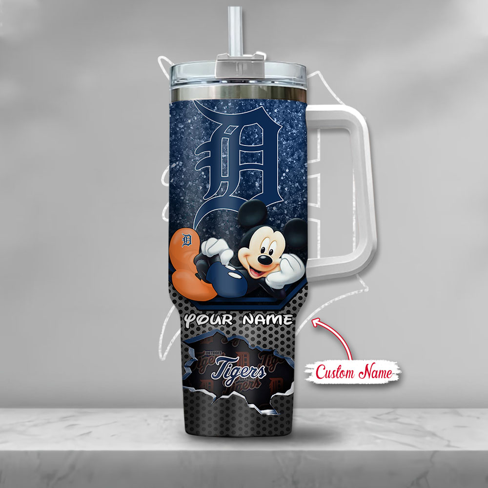 Mlb Detroit Tigers Mickey Mouse Custom Stanley Quencher 40Oz Stainless Steel Tumbler With Handle