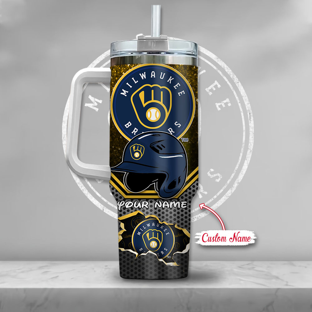 Mlb Milwaukee Brewers Mickey Mouse Custom Stanley Quencher 40Oz Stainless Steel Tumbler With Handle