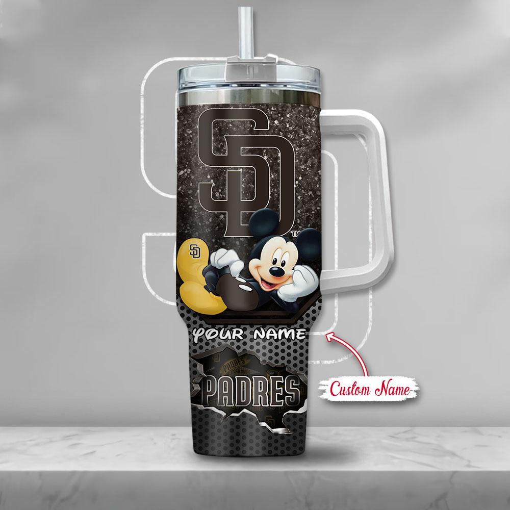 Mlb San Diego Padres Mickey Mouse Custom Stanley Quencher 40Oz Stainless Steel Tumbler With Handle