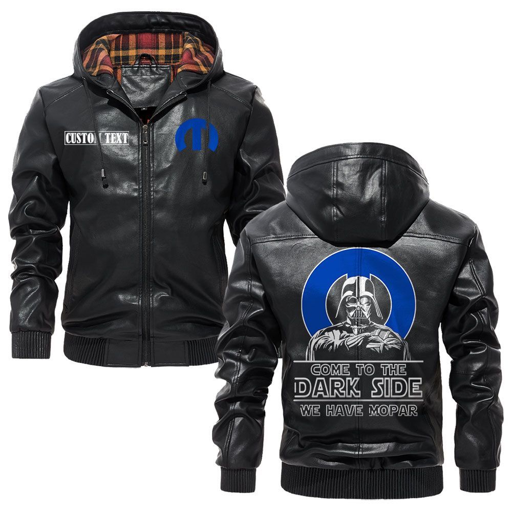 Mopar Logo Custom Name Leather Hoodie Jacket Warm Outerwear with Star Wars Theme