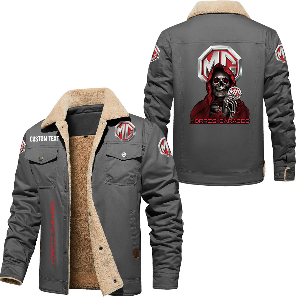 Morris Garages Cars Skull Art Print Custom Name Cargo Fleece Lined Cotton Jacket
