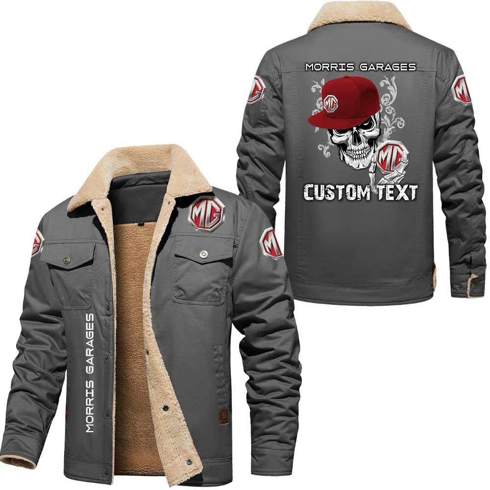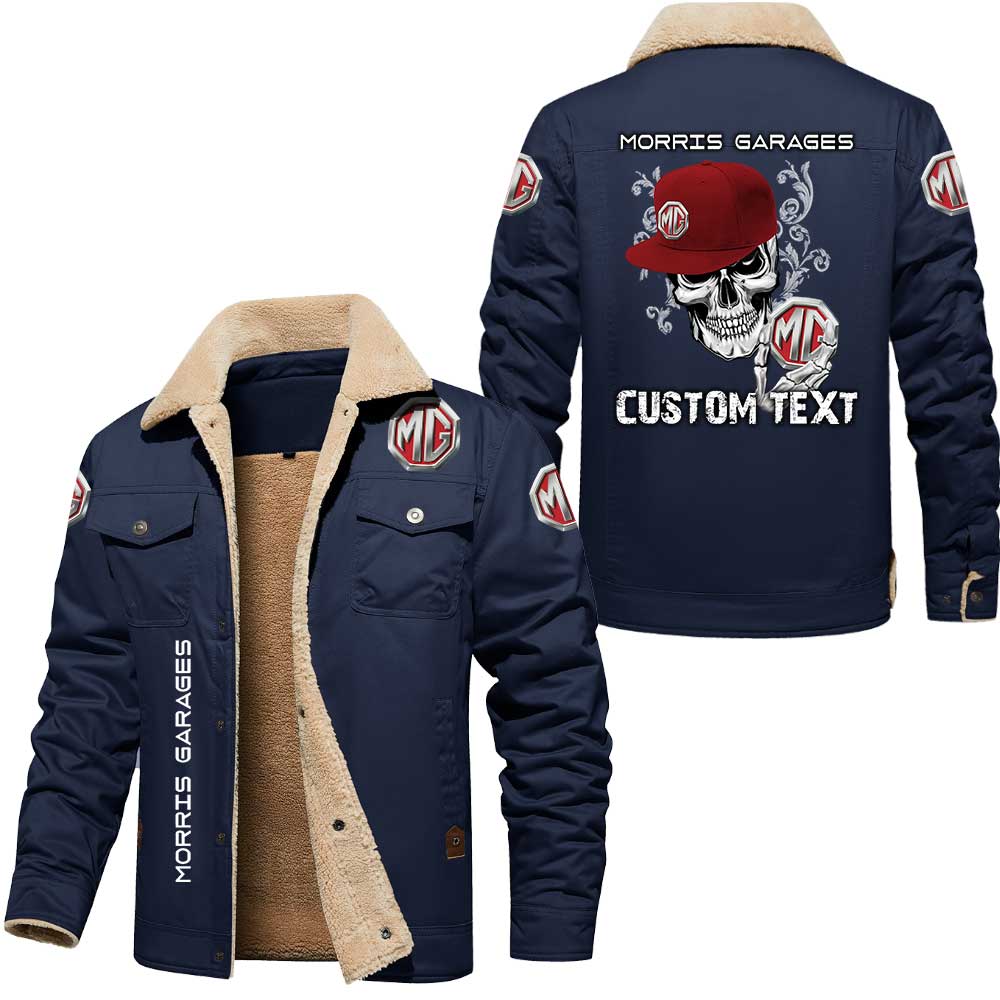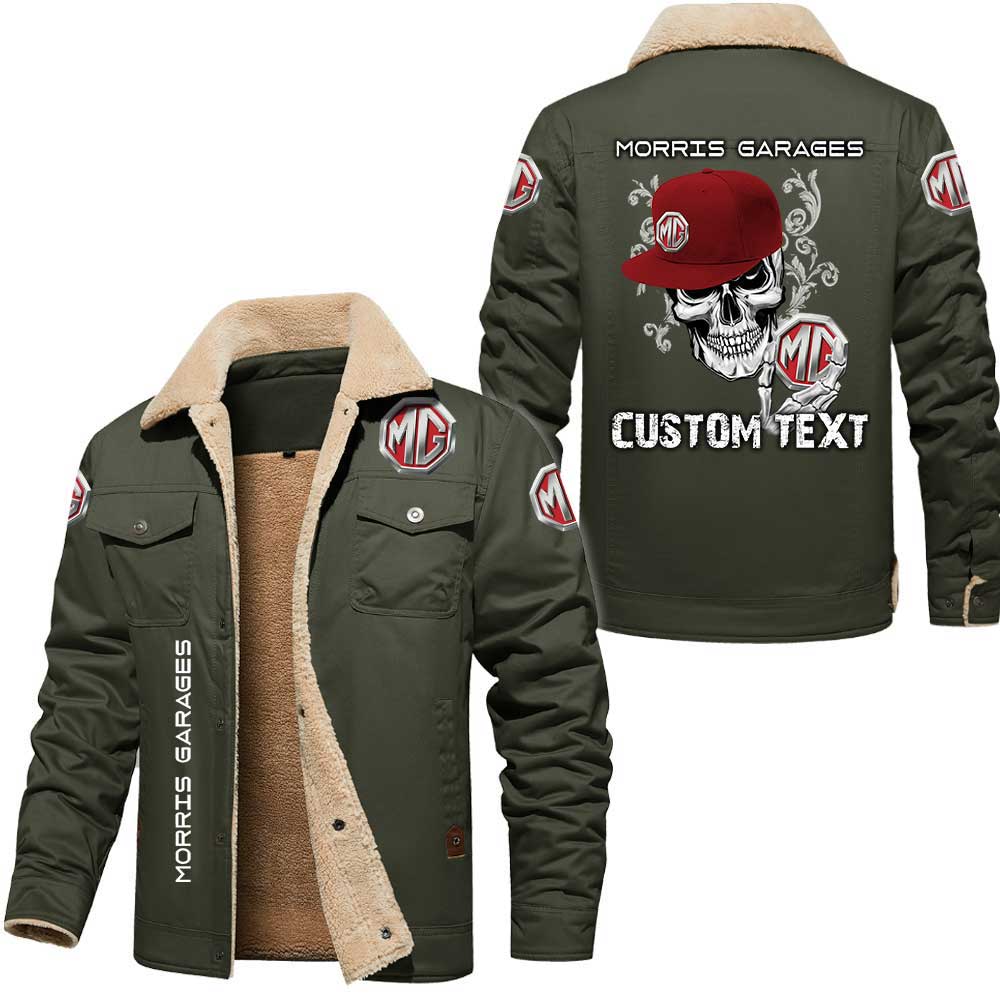 Morris Garages Cars Skull Custom Name Cargo Fleece Lined Cotton Jacket