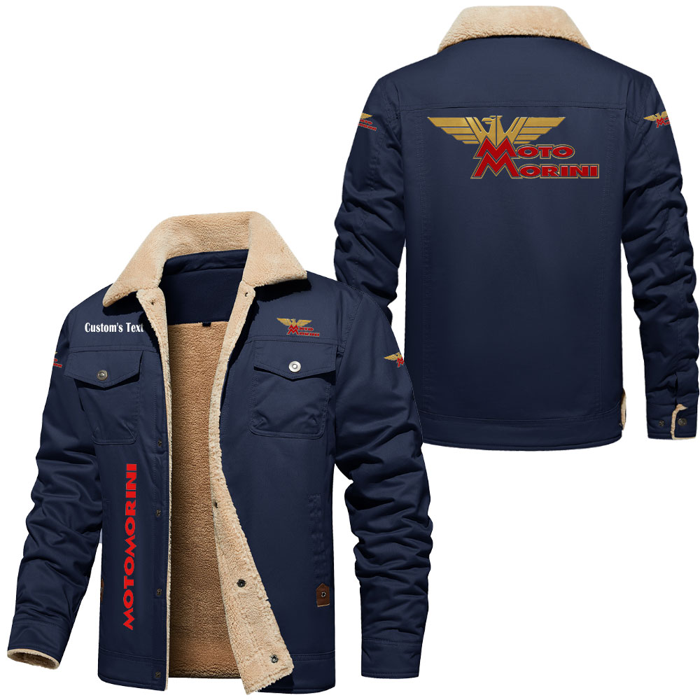 Moto Morini Logo Custom Text Cargo Fleece Lined Cotton Jacket