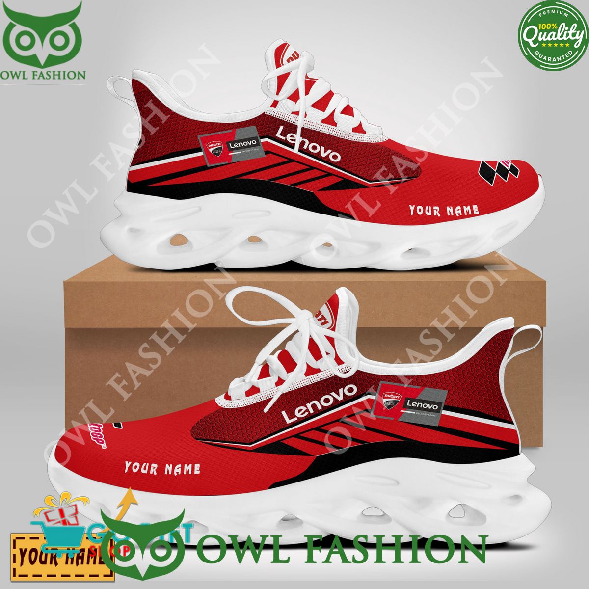MotoGP Ducati Lenovo Max Soul Shoes Sneakers Printed White And Black Sole For Men And Women