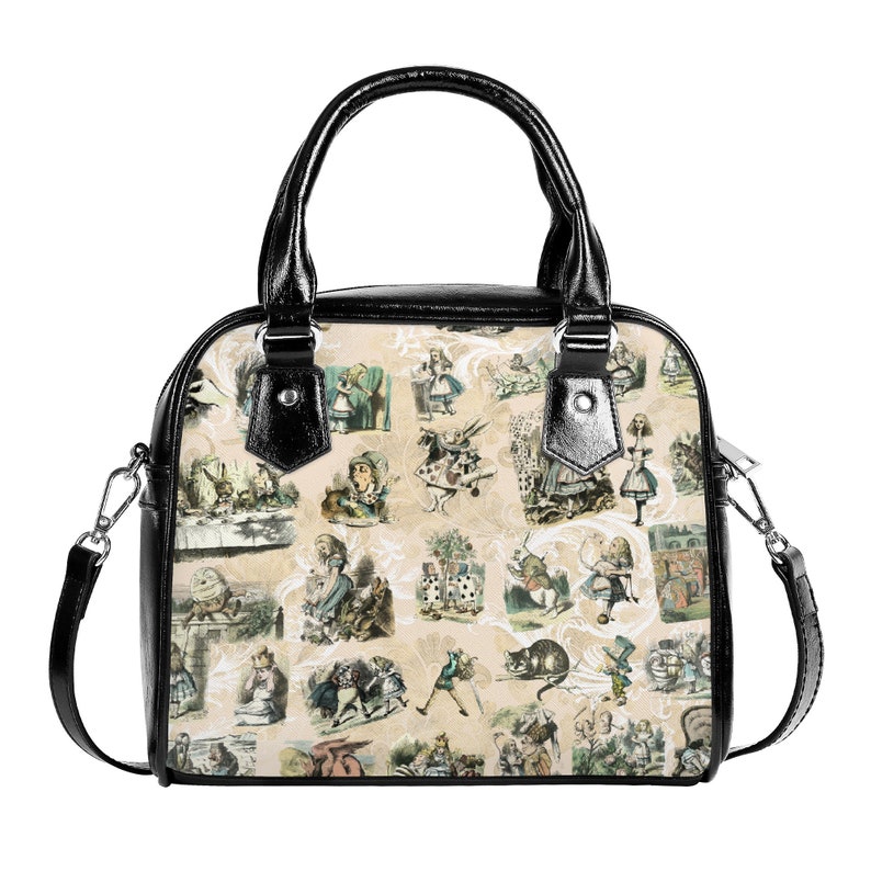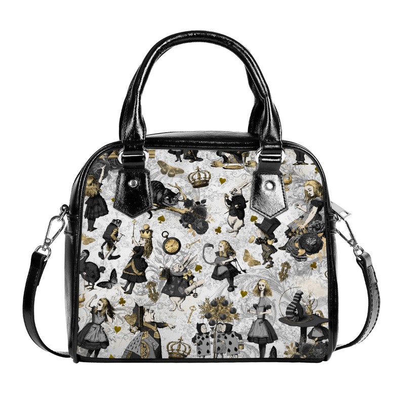 Muchier Pink Gothic Alice In Wonderland Black Grey Christmas Shoulder Hand Bag