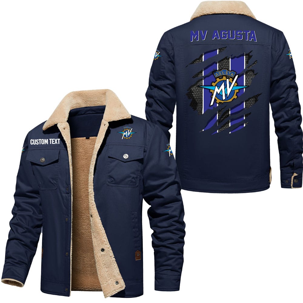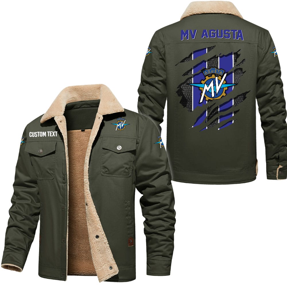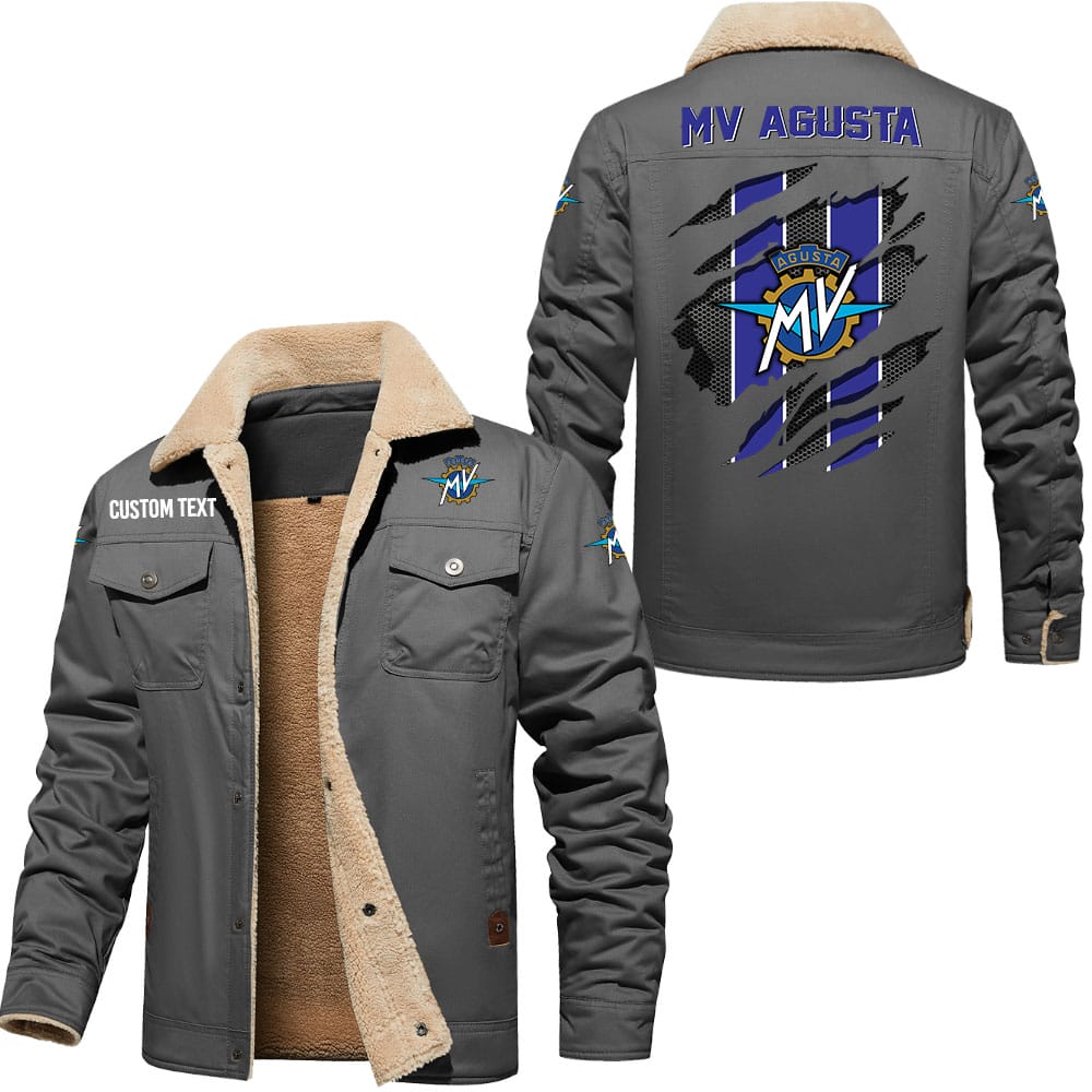 MV Agusta Logo Custom Name Cargo Fleece Lined Cotton Jacket
