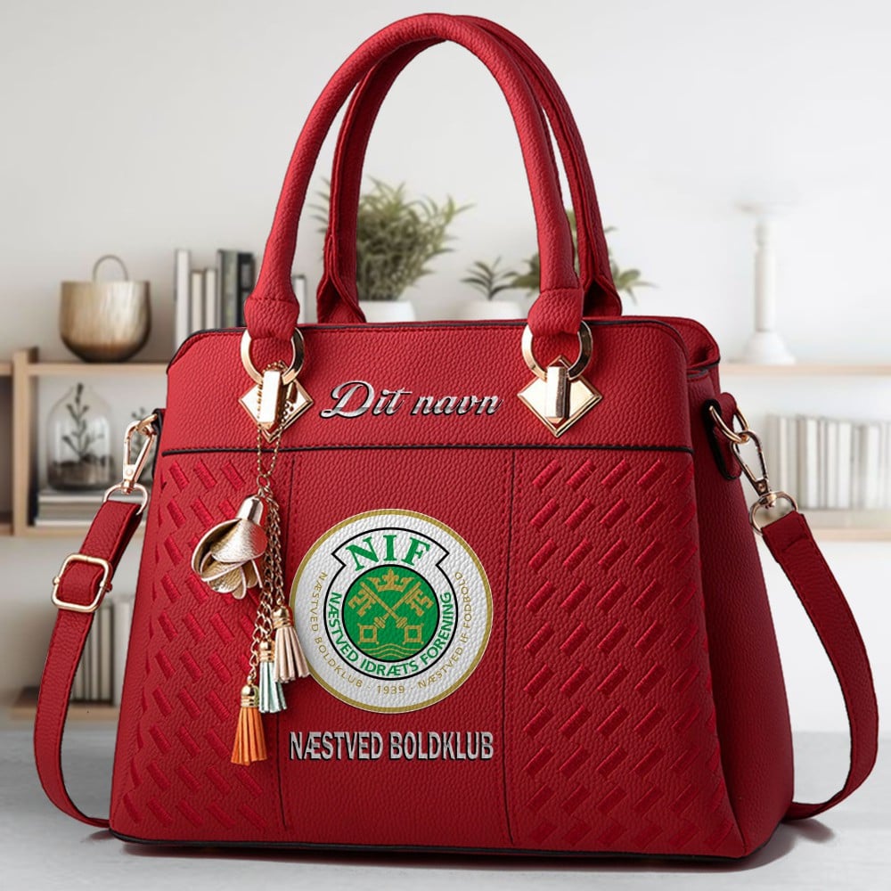 Nastved Boldklub Logo Crossbody Zip Hand Bag With Tassel Custom Name For Women