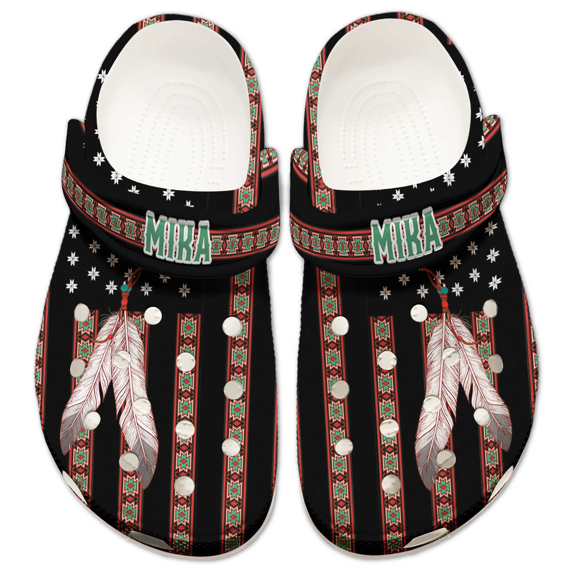 Native Ethnic Stripes & Feather Custom Crocs And Clogs Shoes Printed For Men Women And Kids