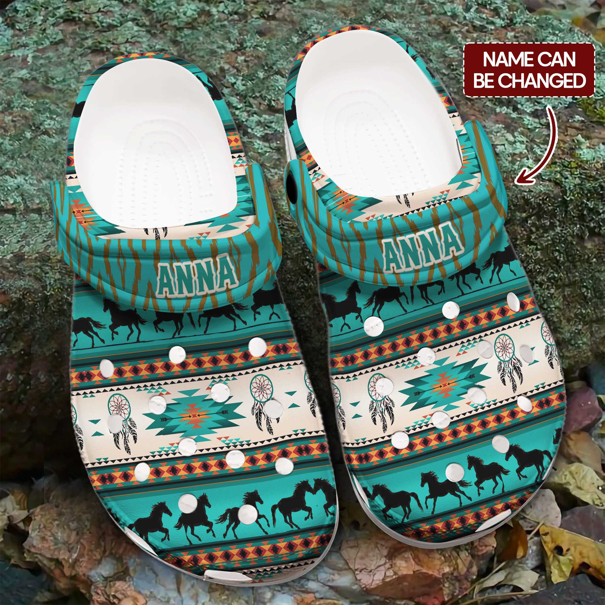 Native Horse Pattern Custom Crocs And Clogs Shoes Printed For Men Women And Kids
