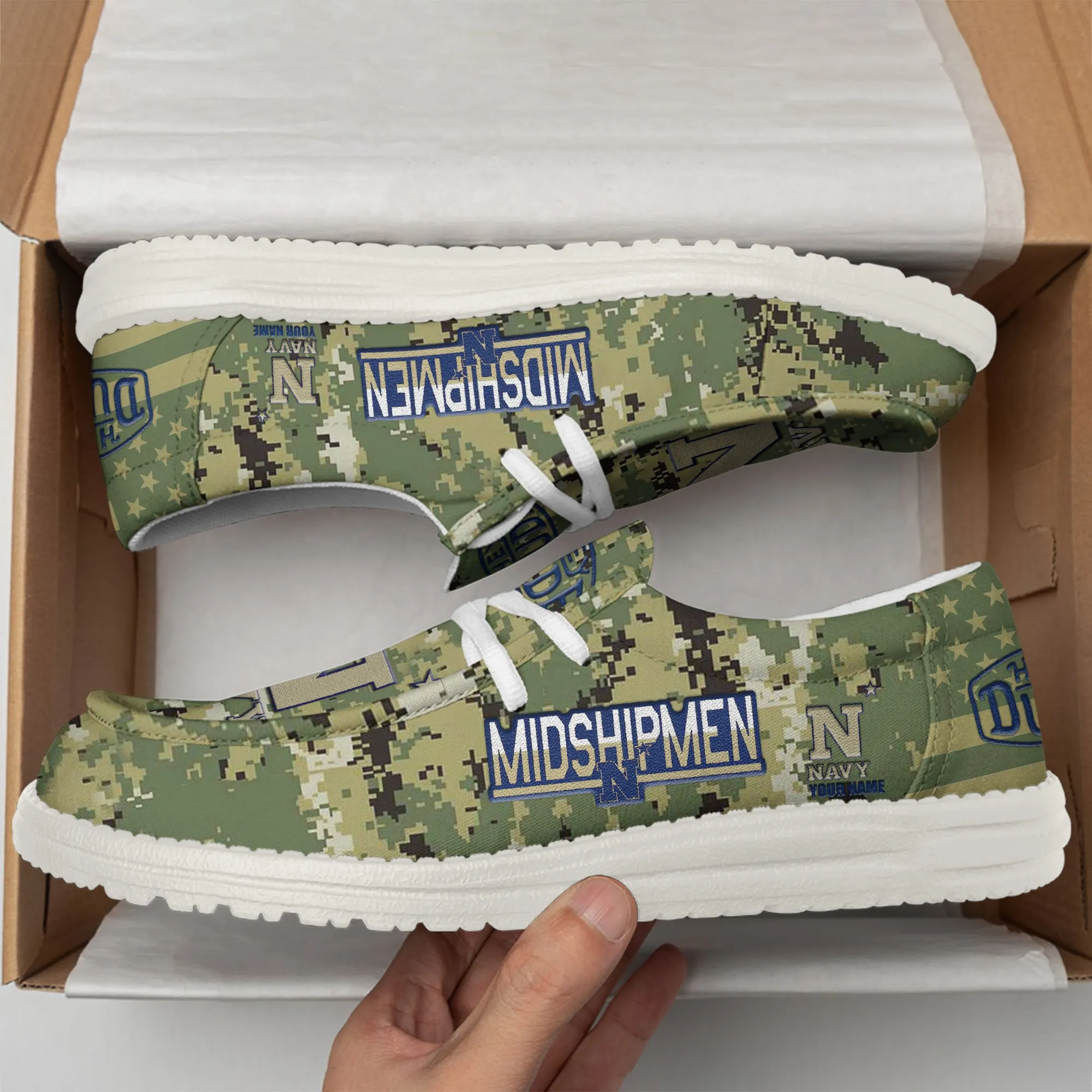 Navy Midshipmen 3D Print Dude Shoes Camo Green Best Gift For Sport Fan