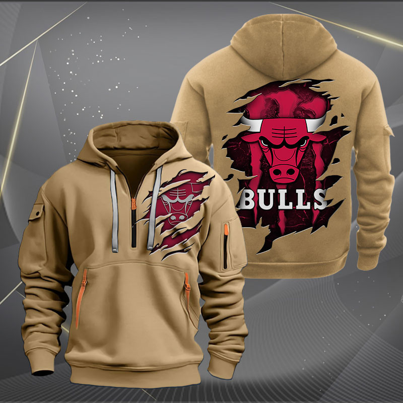 NBA Chicago Bulls Logo Sport 2025 Quater Zip Hoodie Men