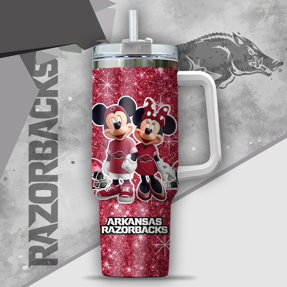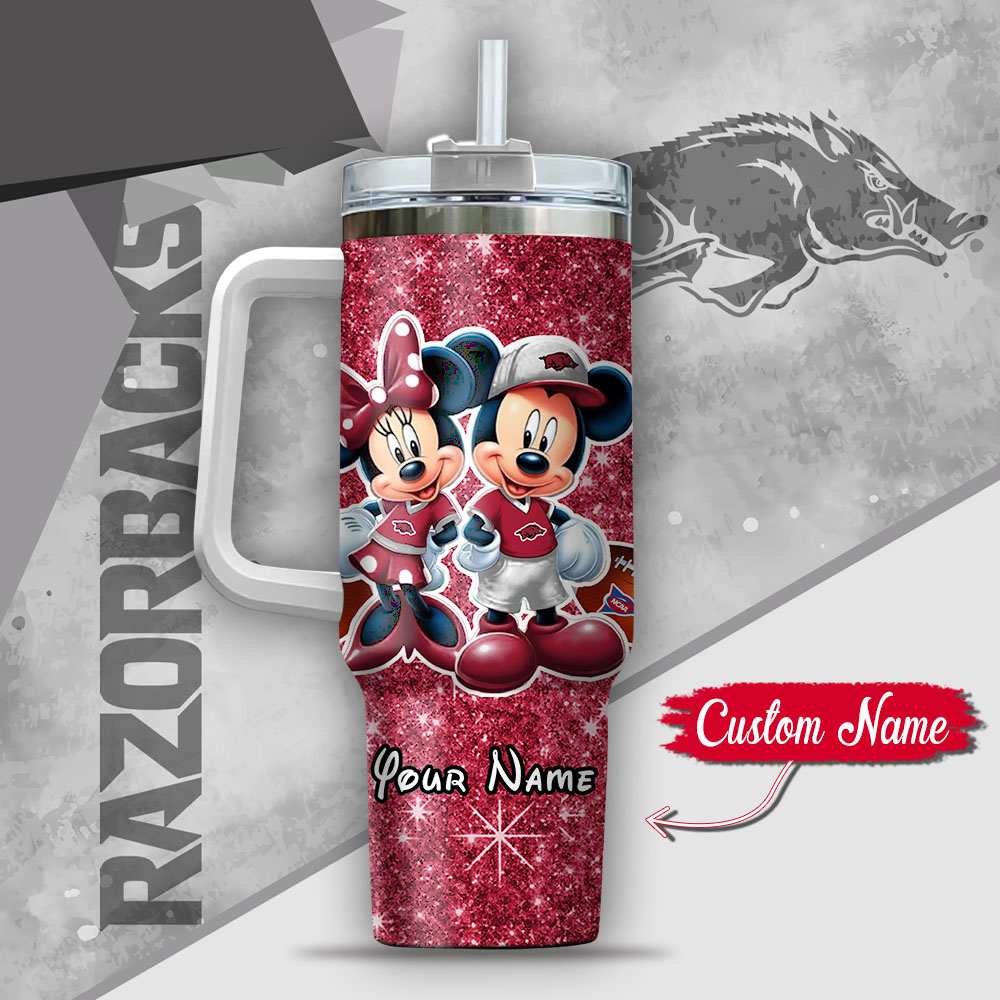 Ncaa Arkansas Razorbacks Mickey And Minnie Couple Custom Stanley Quencher 40Oz Stainless Steel Tumbler With Handle