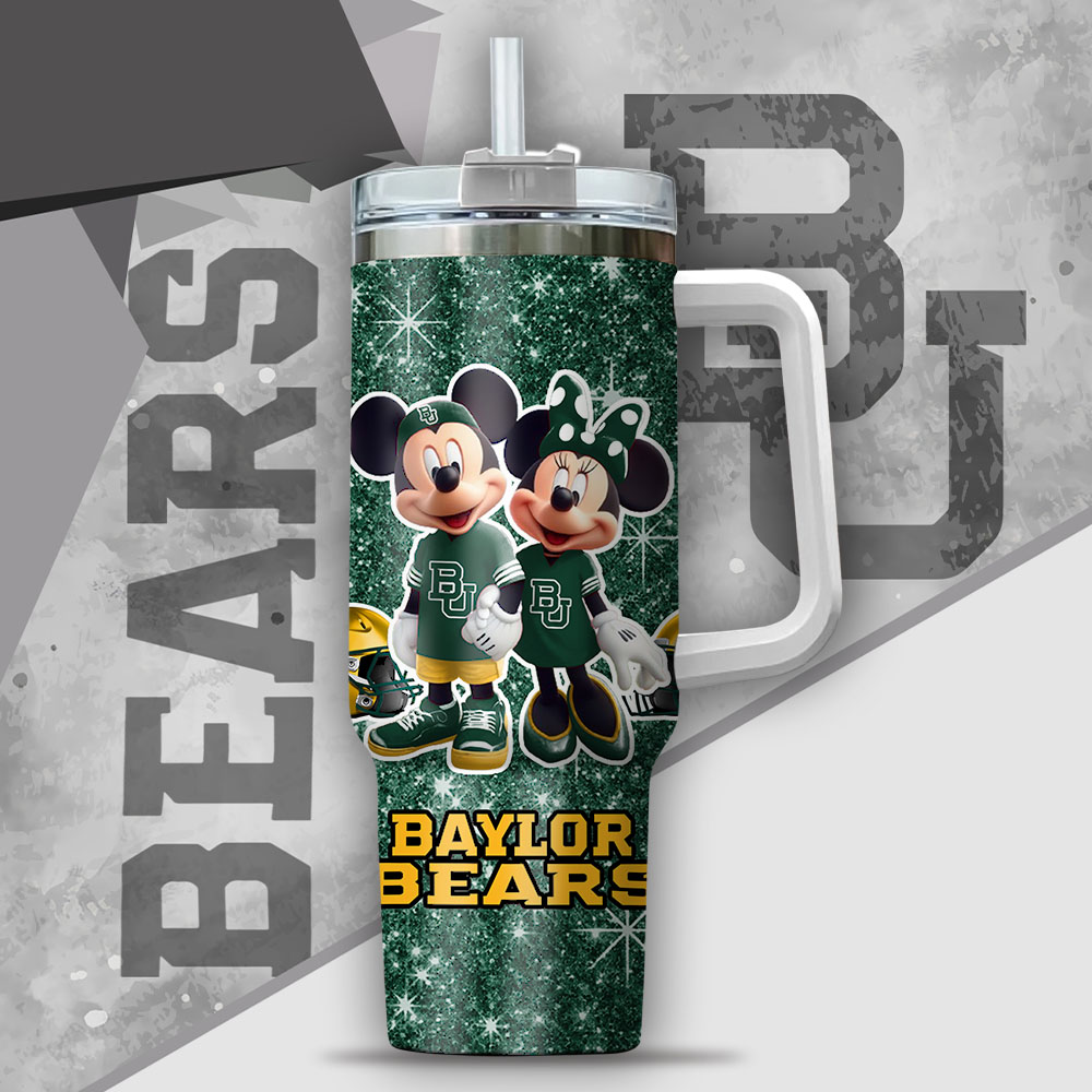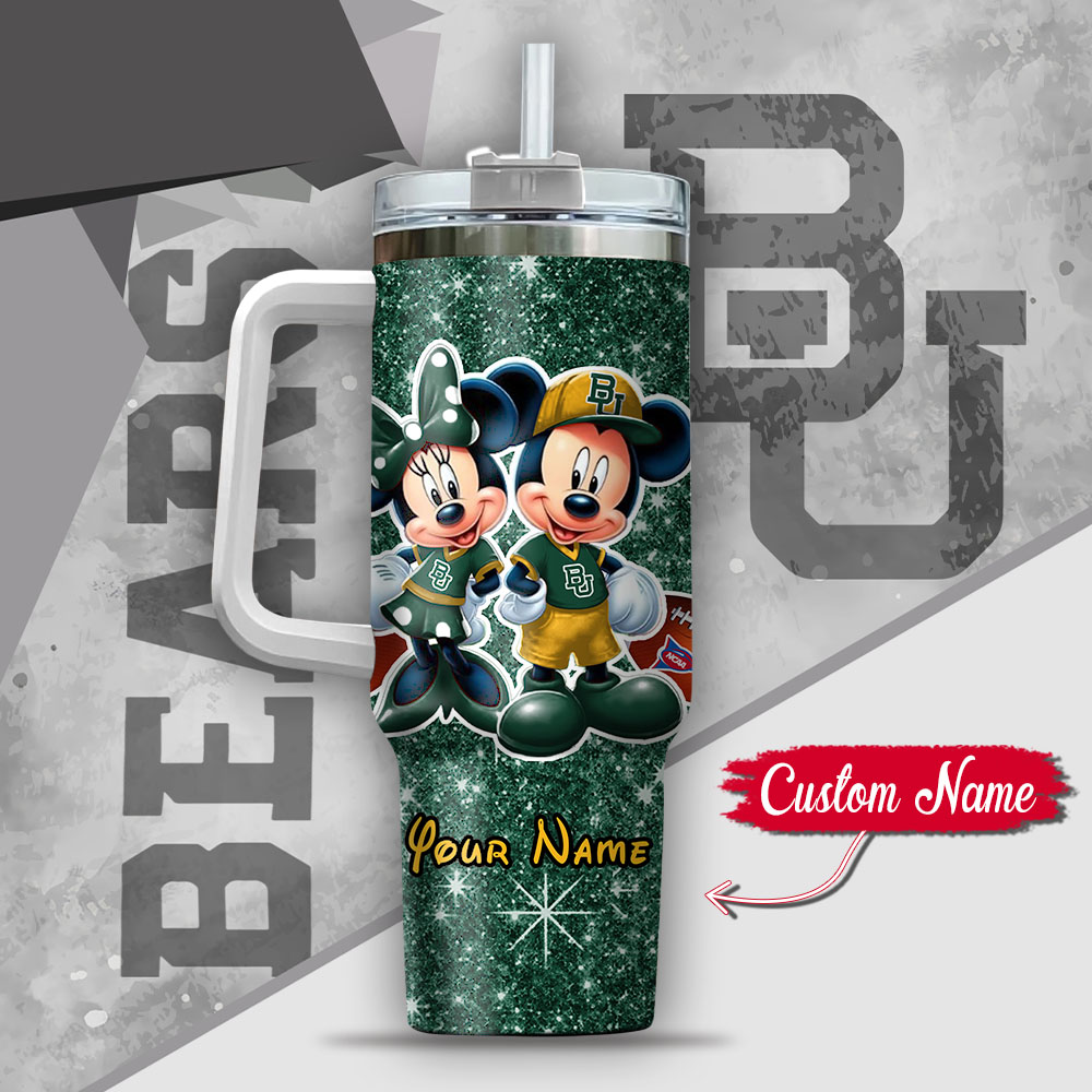 Ncaa Baylor Bears Mickey And Minnie Couple Custom Stanley Quencher 40Oz Stainless Steel Tumbler With Handle