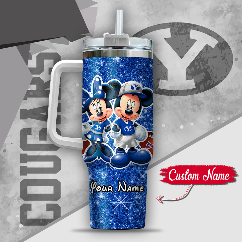 Ncaa Byu Cougars Mickey And Minnie Couple Custom Stanley Quencher 40Oz Stainless Steel Tumbler With Handle