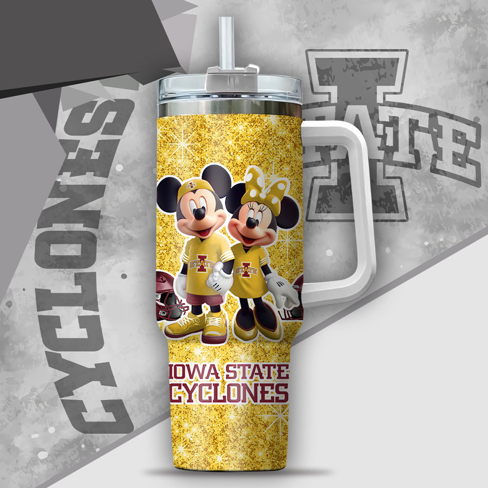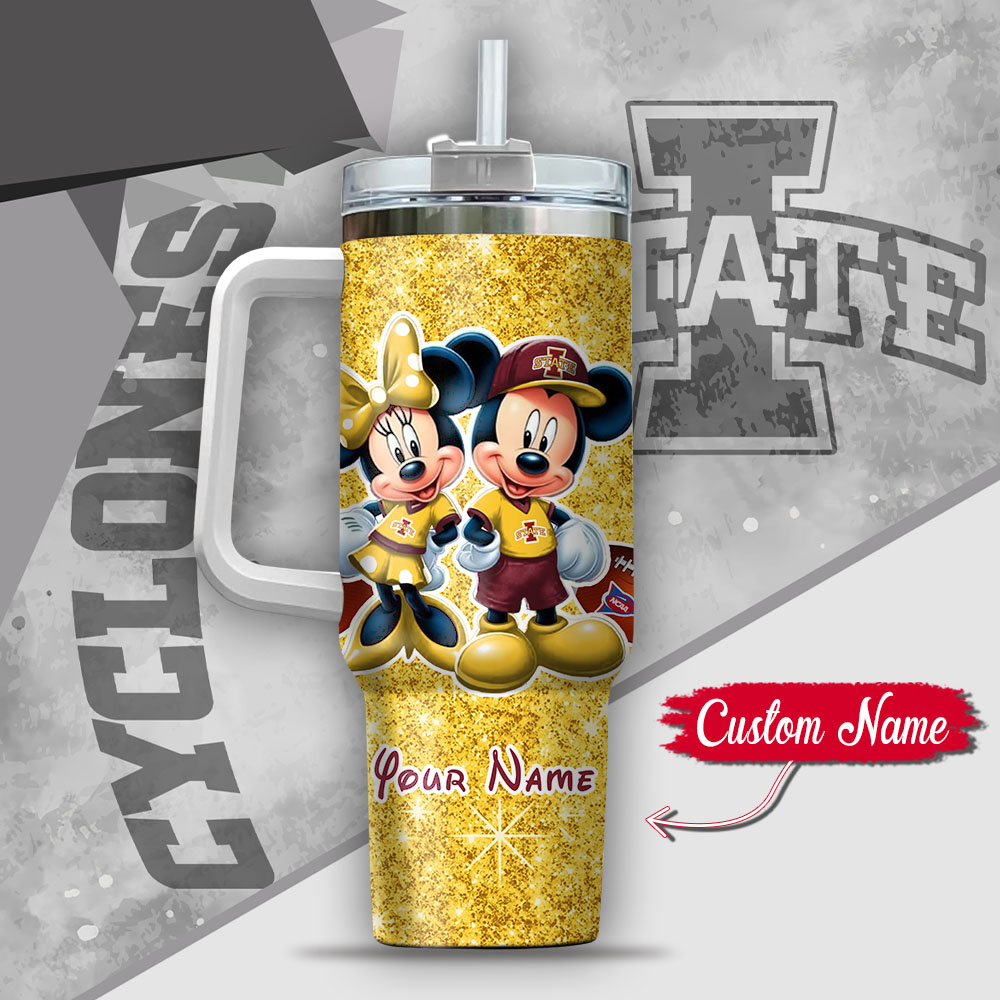 Ncaa Iowa State Cyclones Mickey And Minnie Couple Custom Stanley Quencher 40Oz Stainless Steel Tumbler With Handle