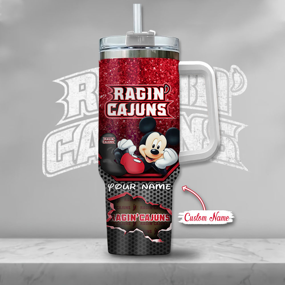 Ncaa Louisiana Ragin #8217; Cajuns Mickey Mouse Custom Stanley Quencher 40Oz Stainless Steel Tumbler With Handle