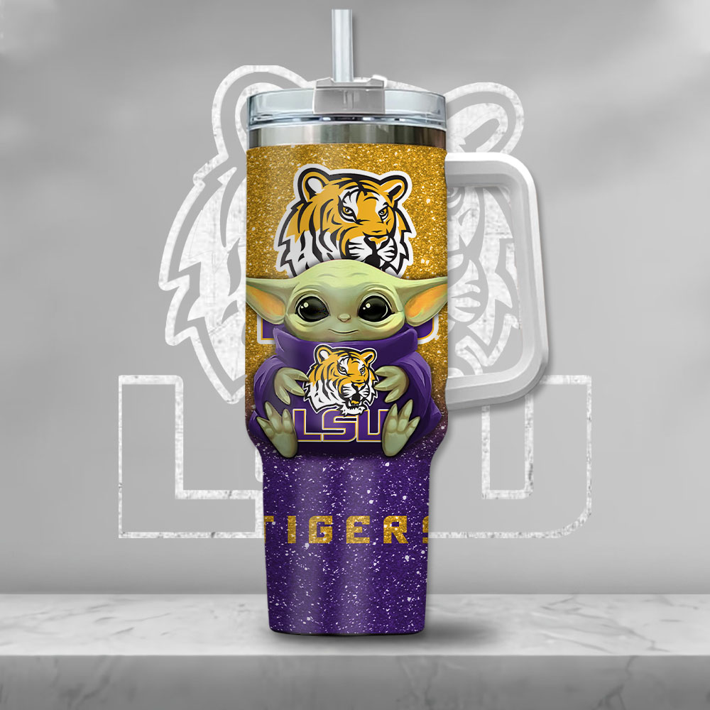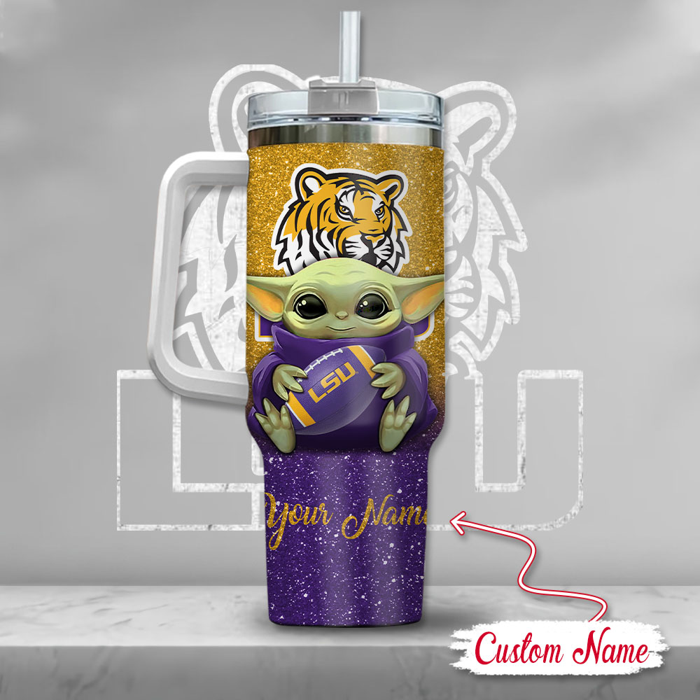 Ncaa Lsu Tigers Baby Yoda Custom Stanley Quencher 40Oz Stainless Steel Tumbler With Handle