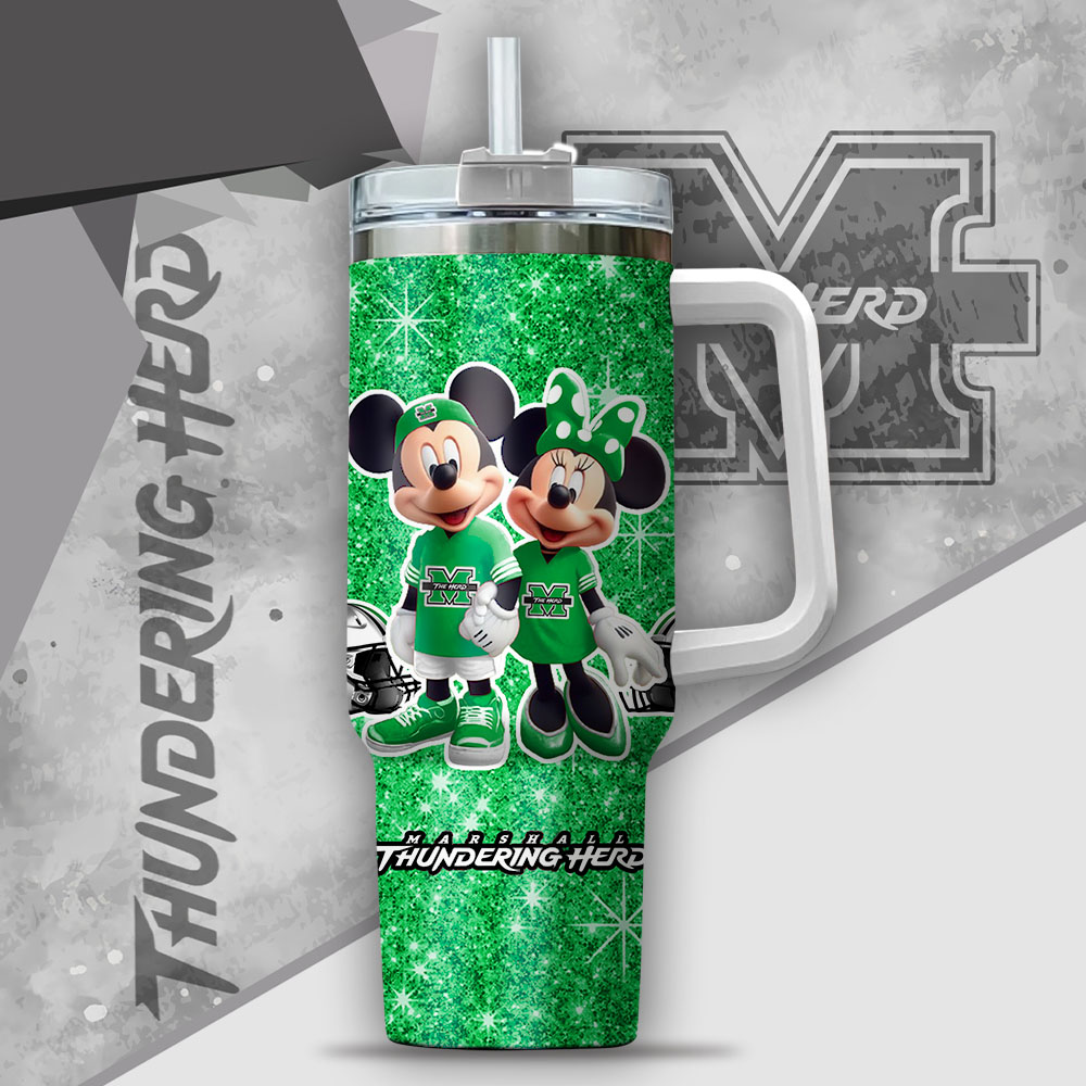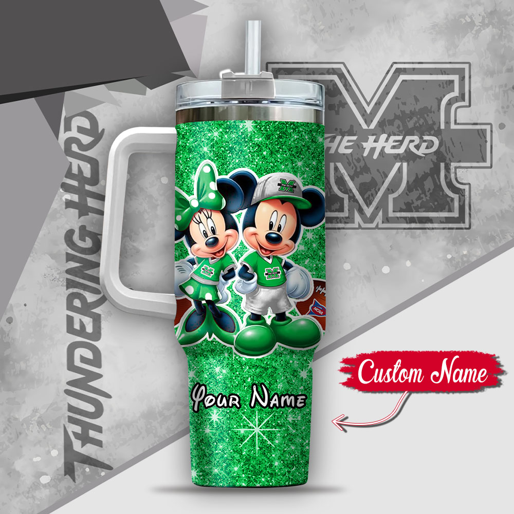 Ncaa Marshall Thundering Herd Mickey And Minnie Couple Custom Stanley Quencher 40Oz Stainless Steel Tumbler With Handle
