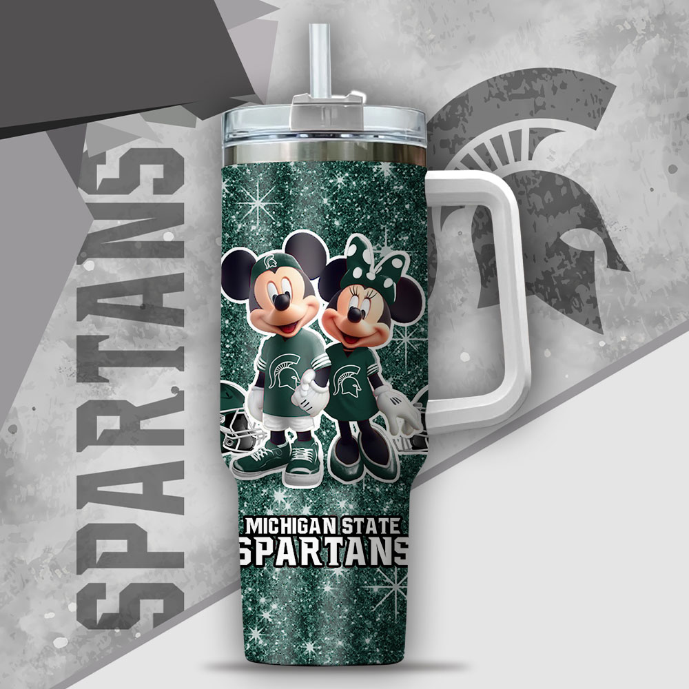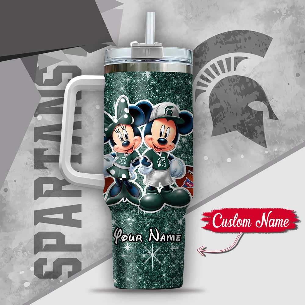 Ncaa Michigan State Spartans Mickey And Minnie Couple Custom Stanley Quencher 40Oz Stainless Steel Tumbler With Handle