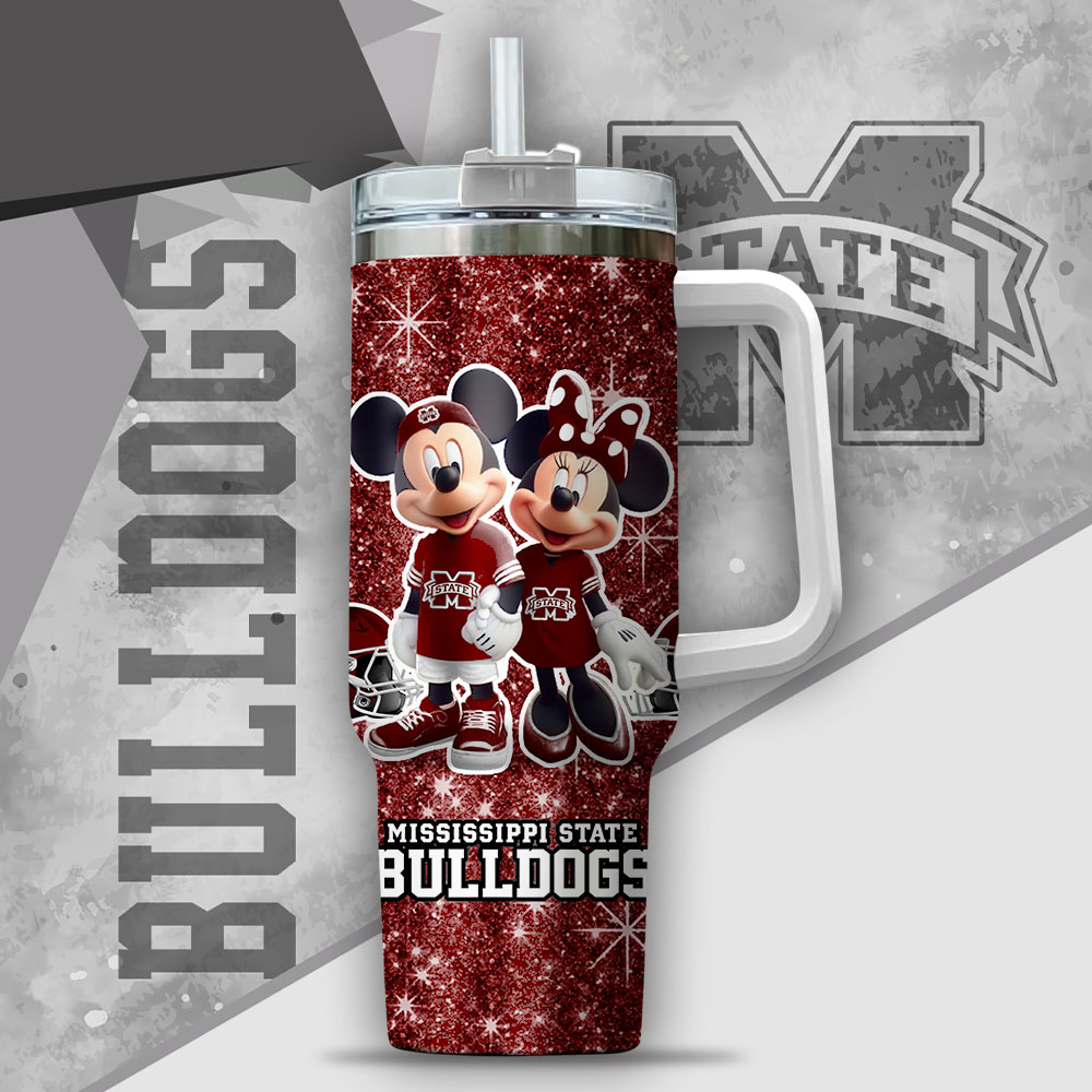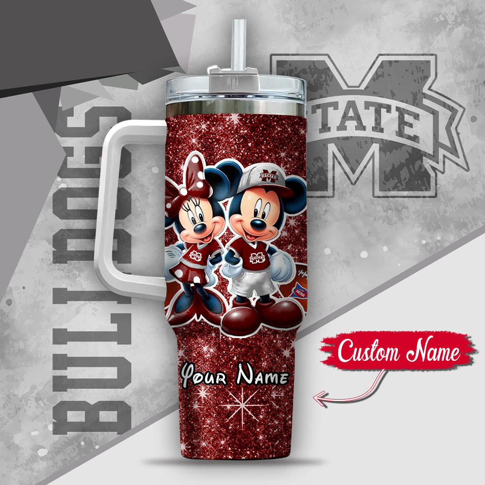 Ncaa Mississippi State Bulldogs Mickey And Minnie Couple Custom Stanley Quencher 40Oz Stainless Steel Tumbler With Handle