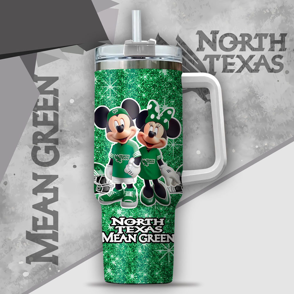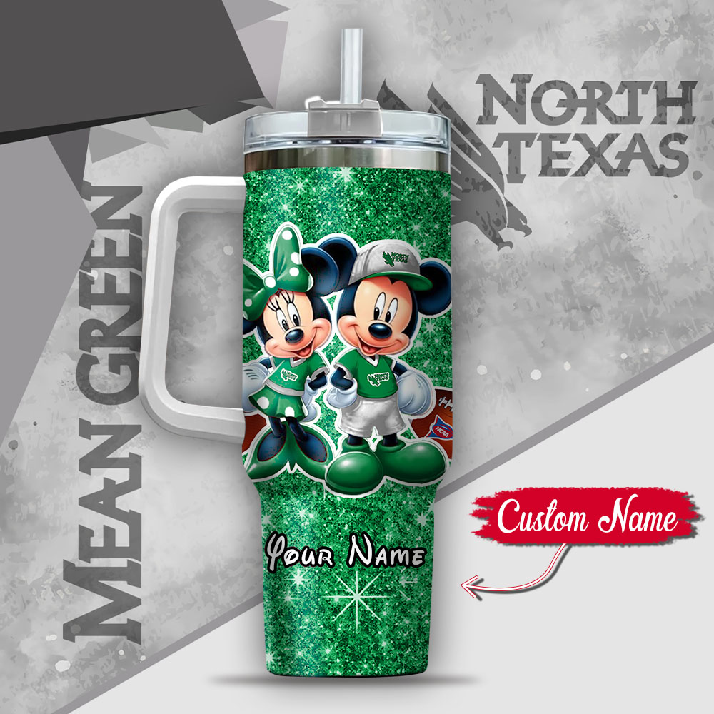 Ncaa North Texas Mean Green Mickey And Minnie Couple Custom Stanley Quencher 40Oz Stainless Steel Tumbler With Handle