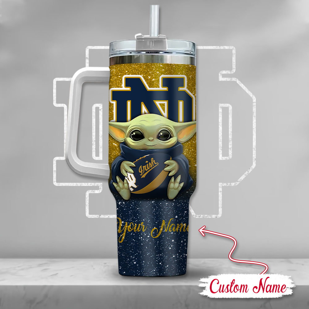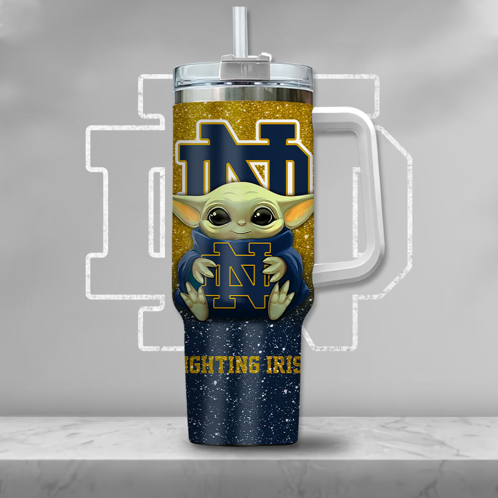 Ncaa Notre Dame Fighting Irish Baby Yoda Custom Stanley Quencher 40Oz Stainless Steel Tumbler With Handle