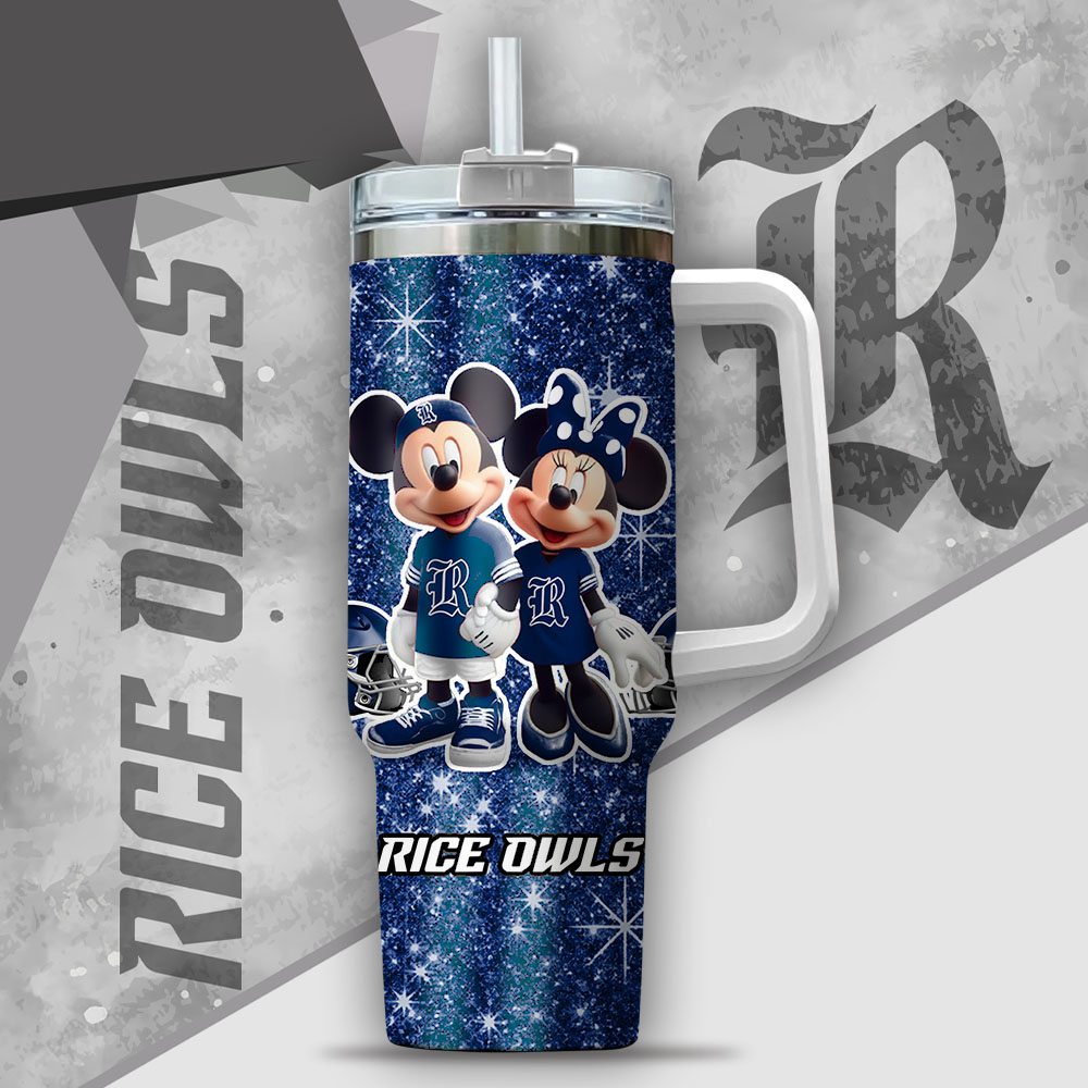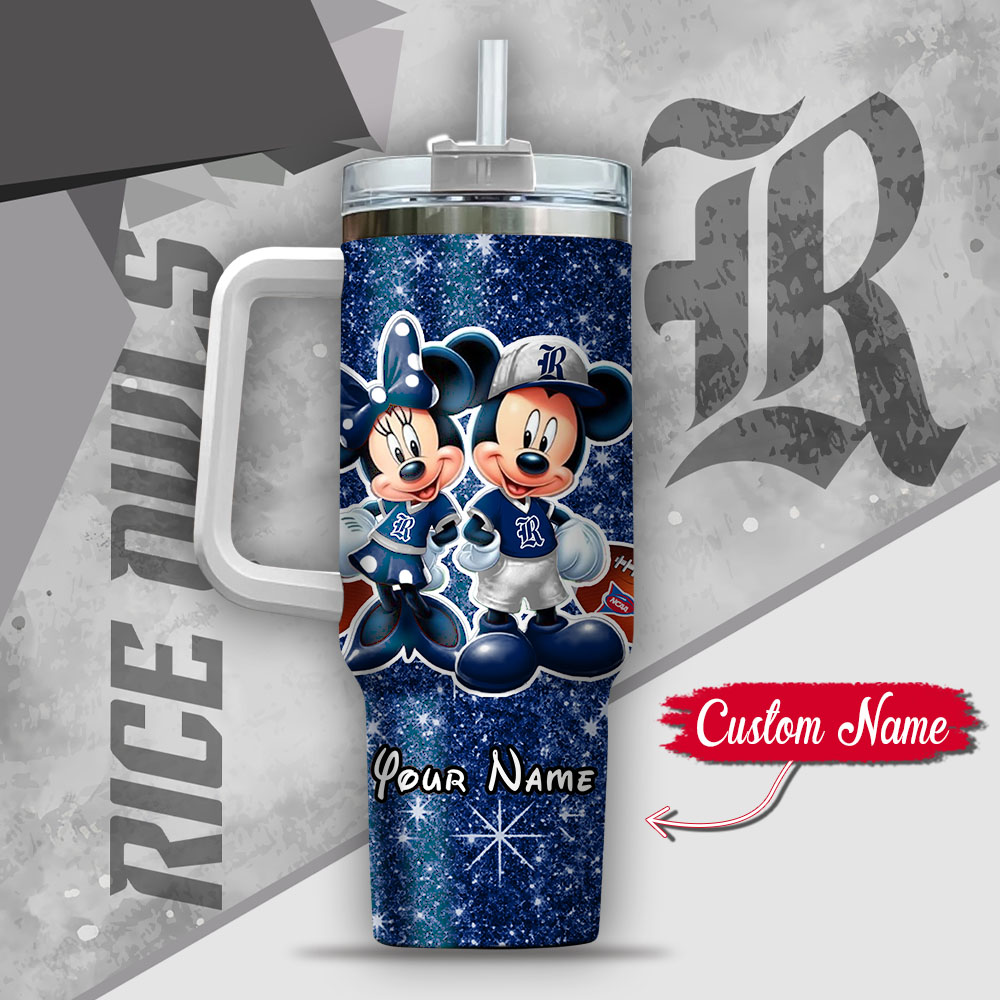 Ncaa Rice Owls Mickey And Minnie Couple Custom Stanley Quencher 40Oz Stainless Steel Tumbler With Handle