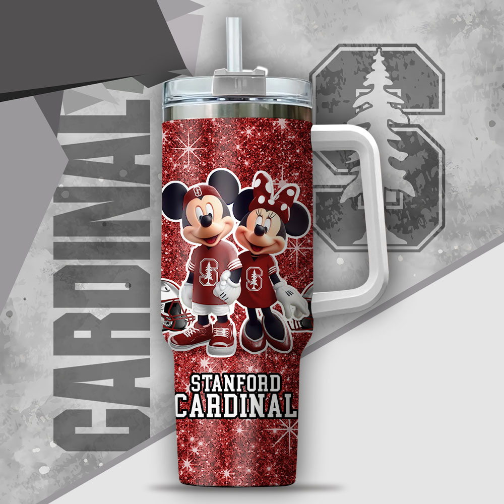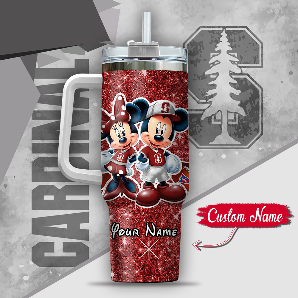 Ncaa Stanford Cardinal Mickey And Minnie Couple Custom Stanley Quencher 40Oz Stainless Steel Tumbler With Handle